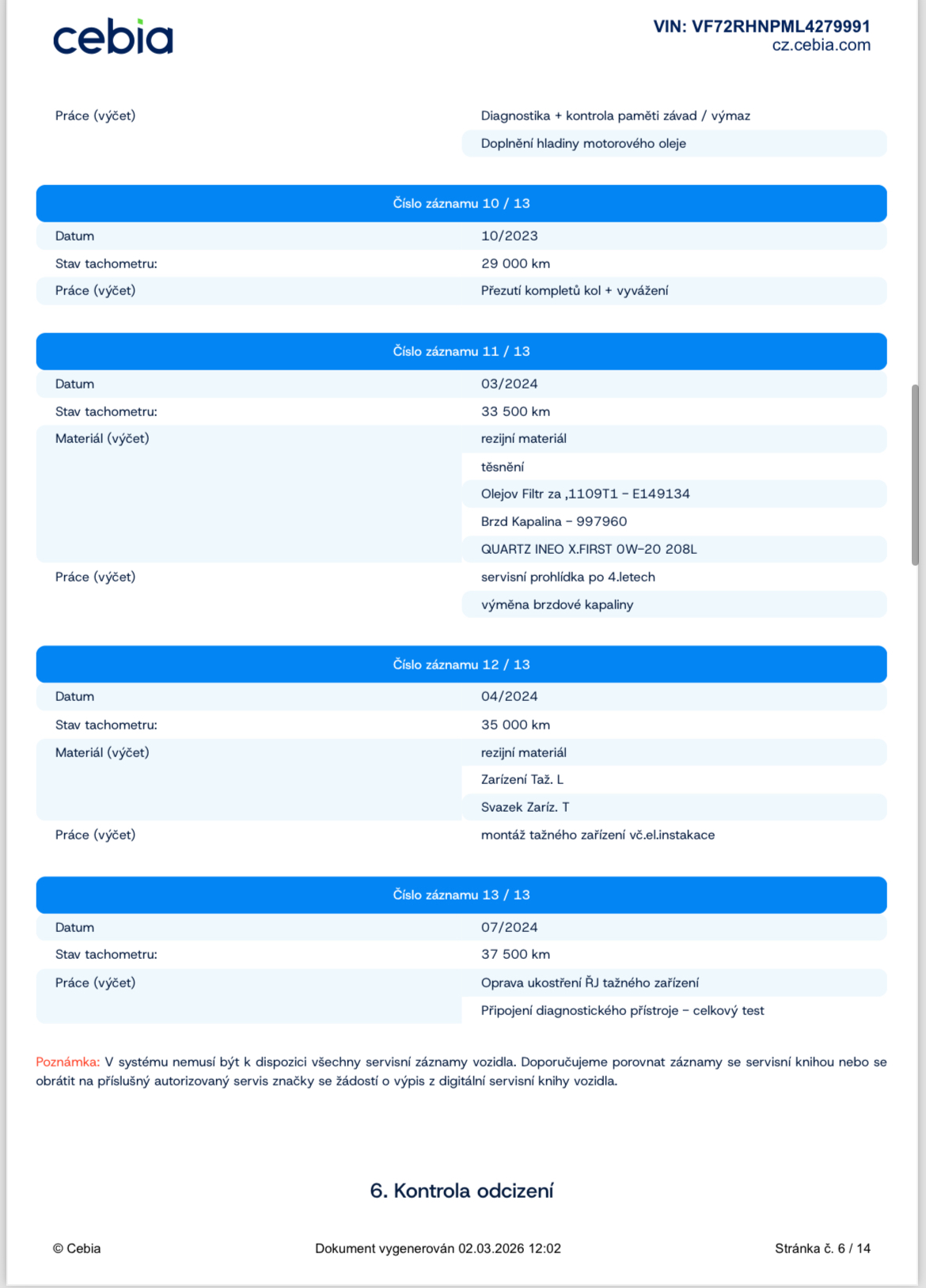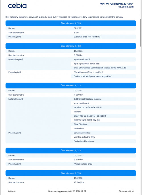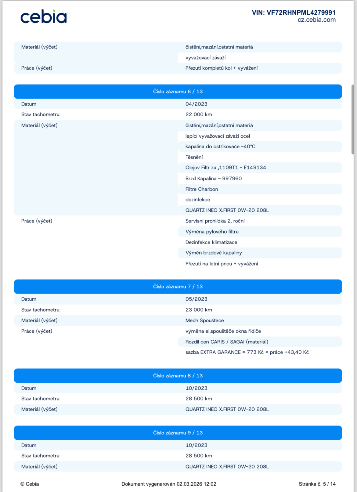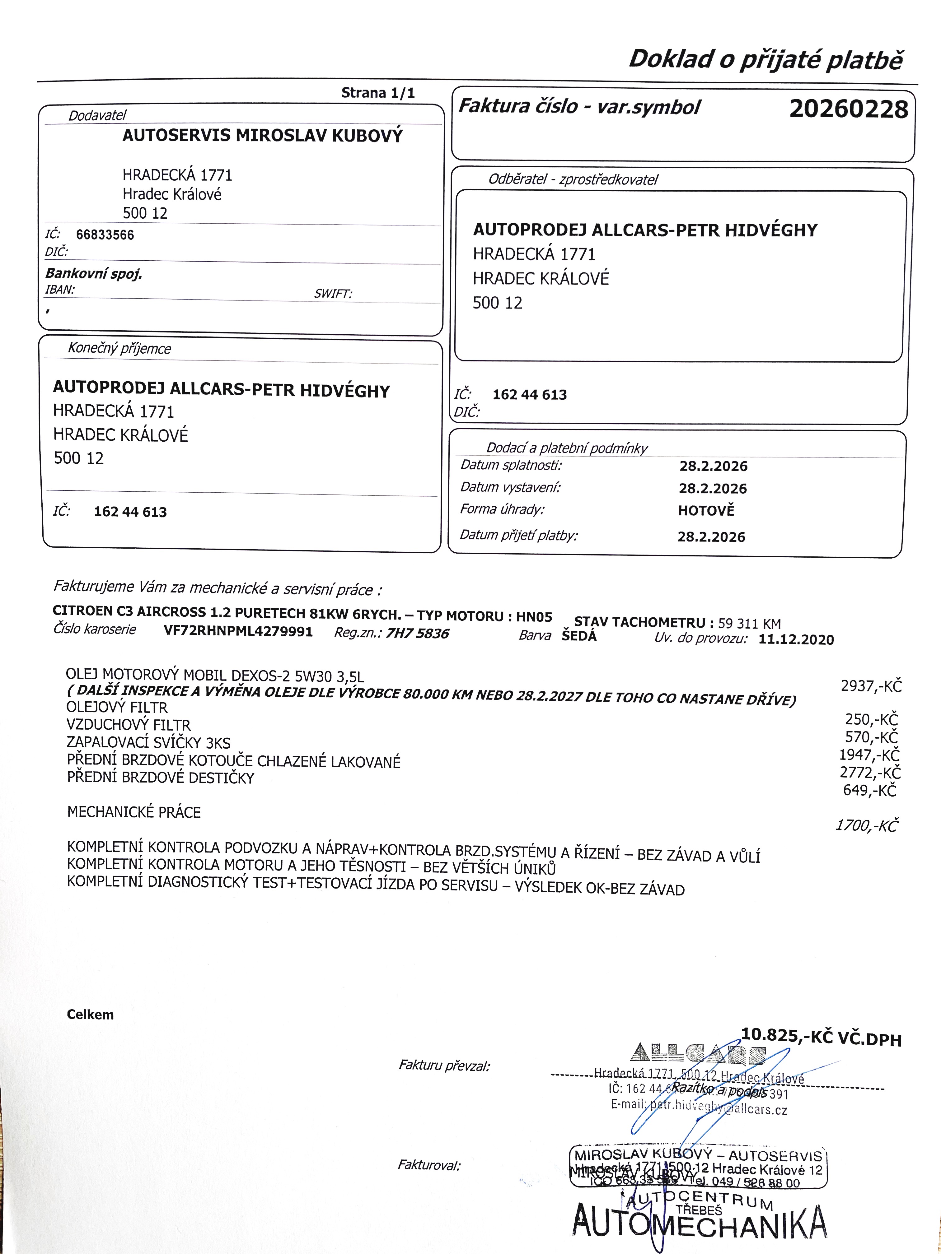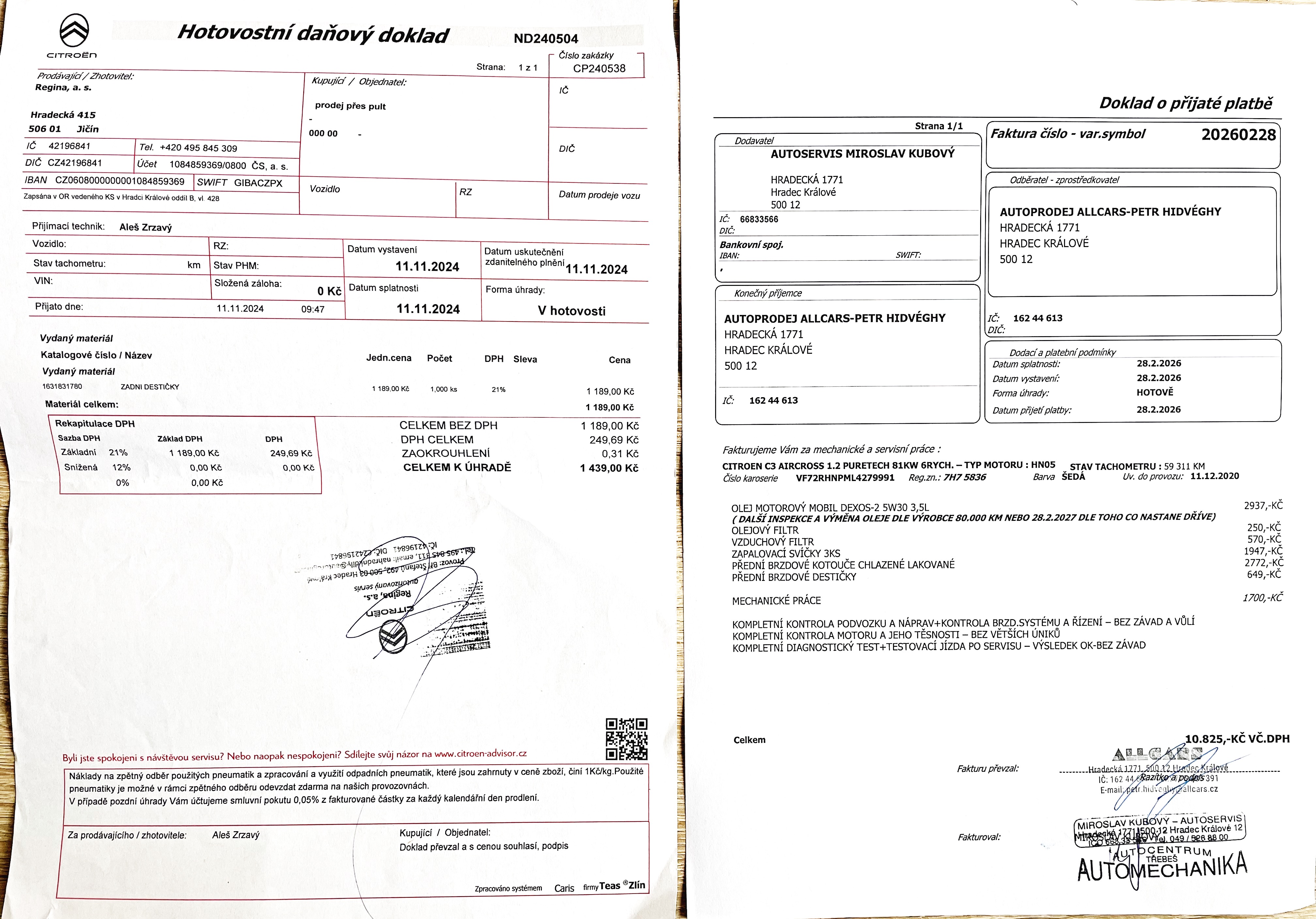 POSLEDNÍ NÁVŠTĚVA AUTORIZOVANÉHO SERVISU CITROEN AUTO REGINA A.S. V HK 11/2024.
