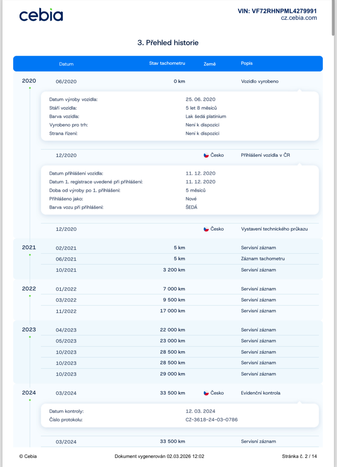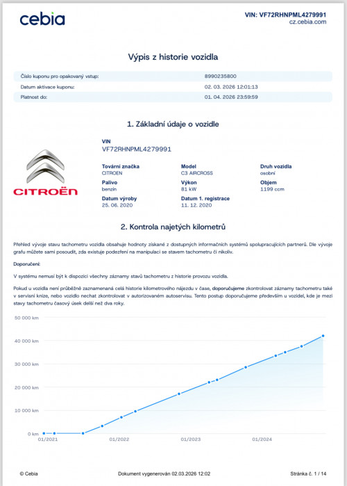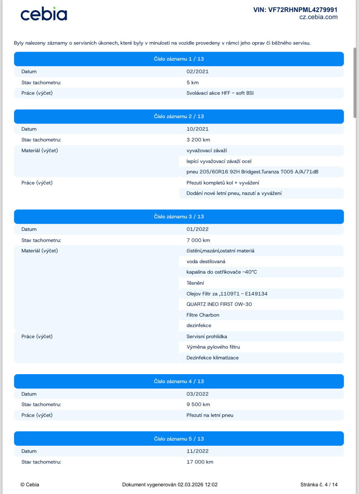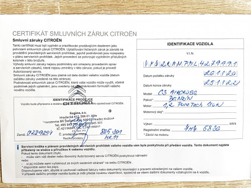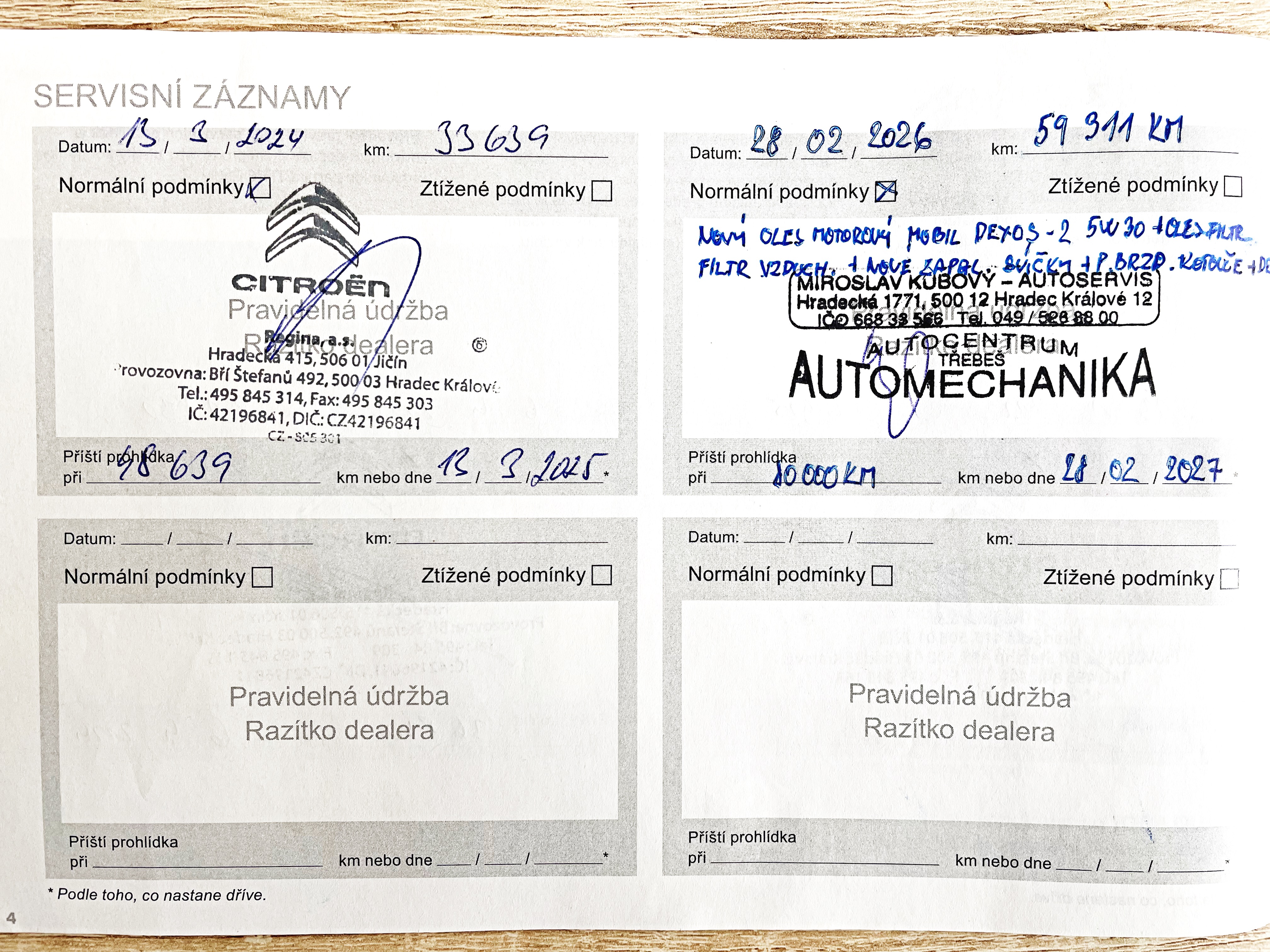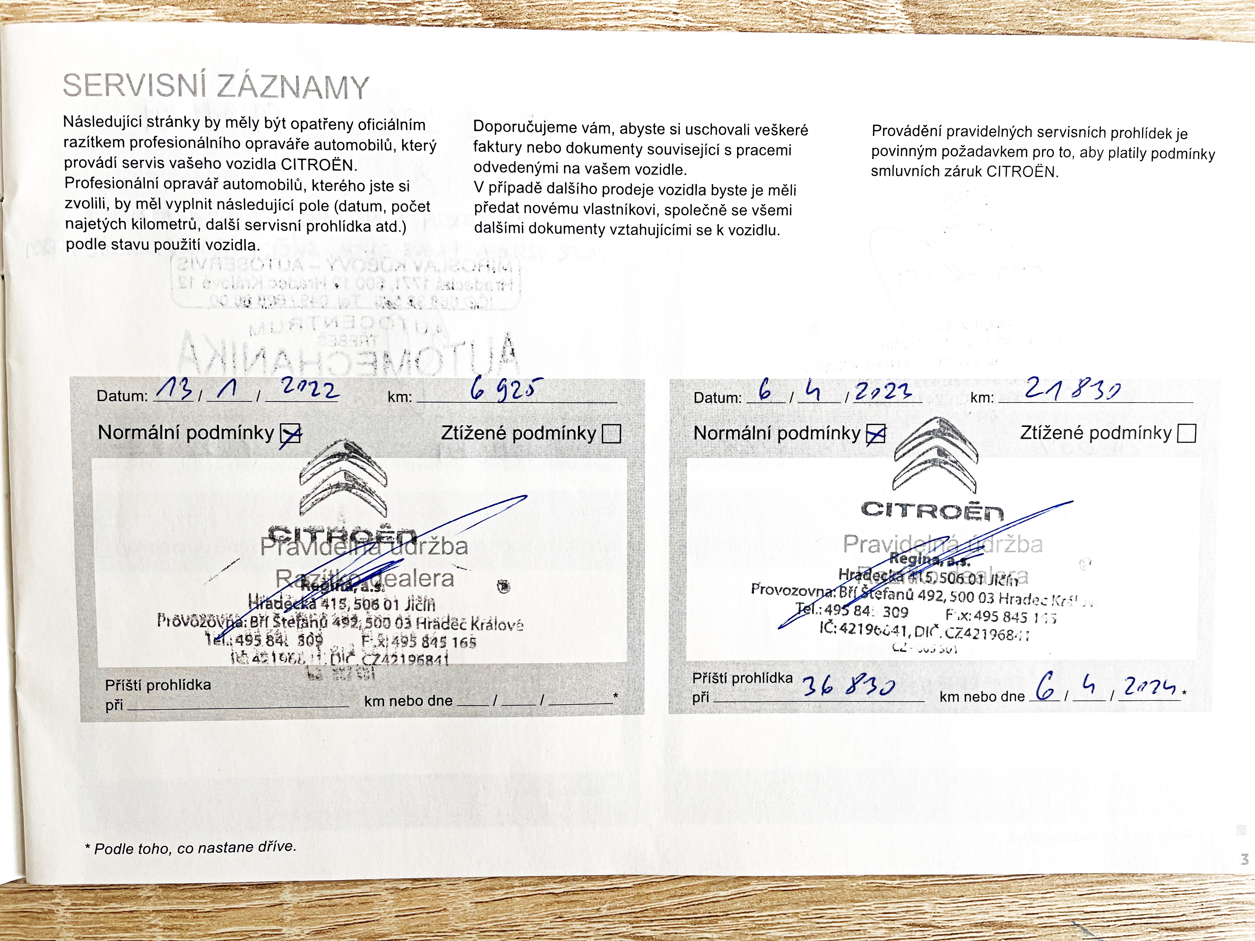 Vozidlo zakoupeno jako nové u autorizovaného dealera CITROEN Auto Regina a.s. v Hradci Králové. Po celou dobu pravidelná údržba dle plánu předpisu příručky údržby výrobce CITROEN a to do roku 2025 pouze u autorizovaného dealera CITROEN Auto Regina a.s. v Hradci Králové, kde bylo zakoupeno.