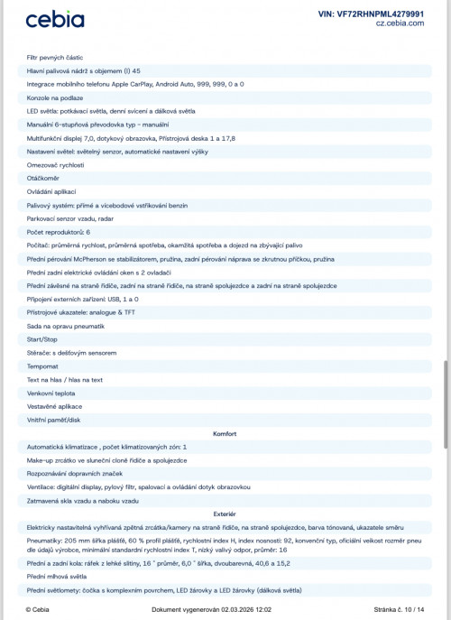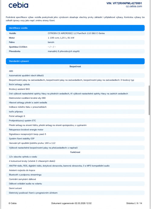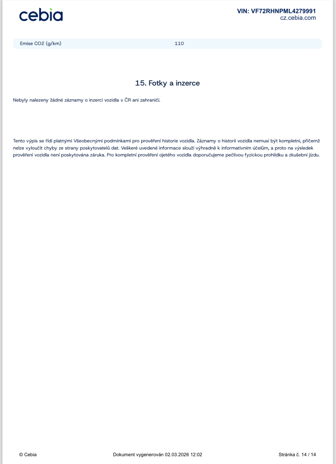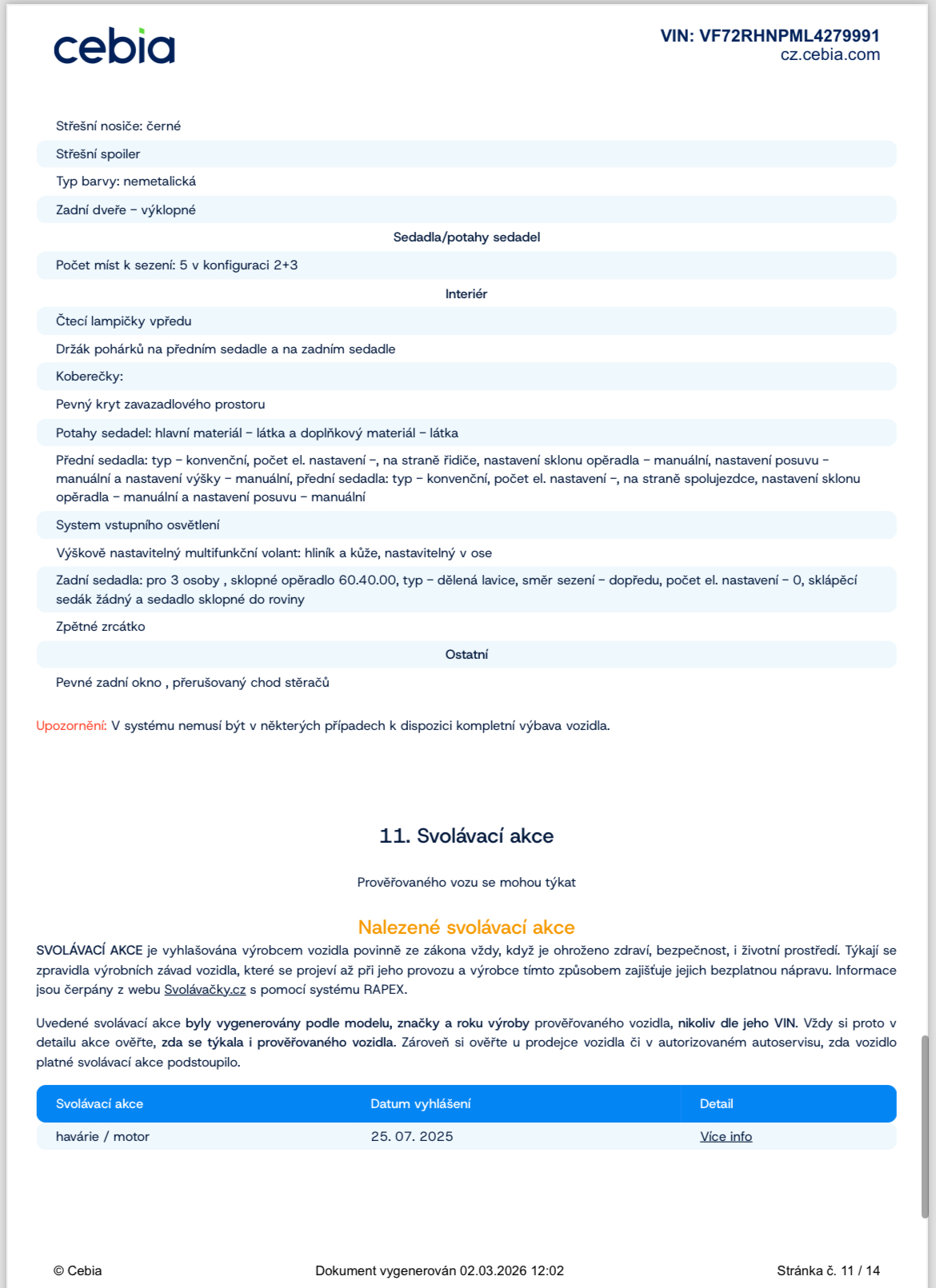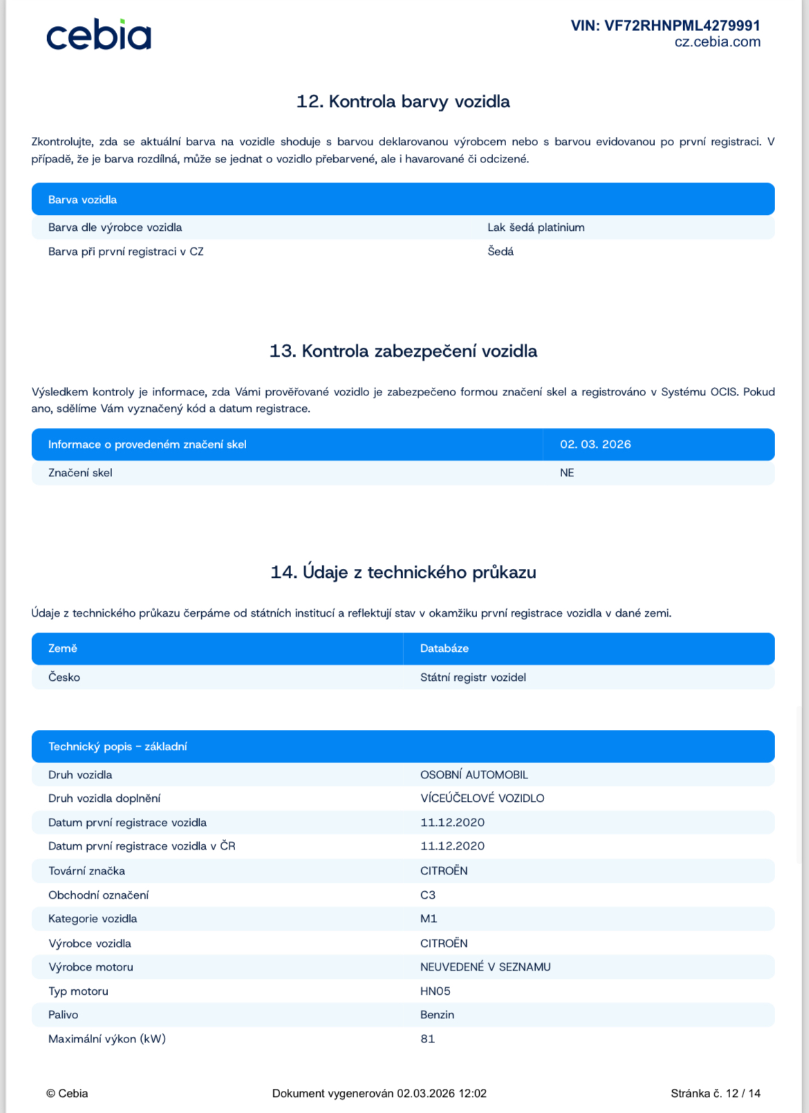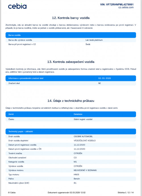 Vozidlo zakoupeno jako nové u autorizovaného dealera CITROEN Auto Regina a.s. v Hradci Králové. Po celou dobu pravidelná údržba dle plánu předpisu příručky údržby výrobce CITROEN a to do roku 2025 pouze u autorizovaného dealera CITROEN Auto Regina a.s. v Hradci Králové, kde bylo zakoupeno.