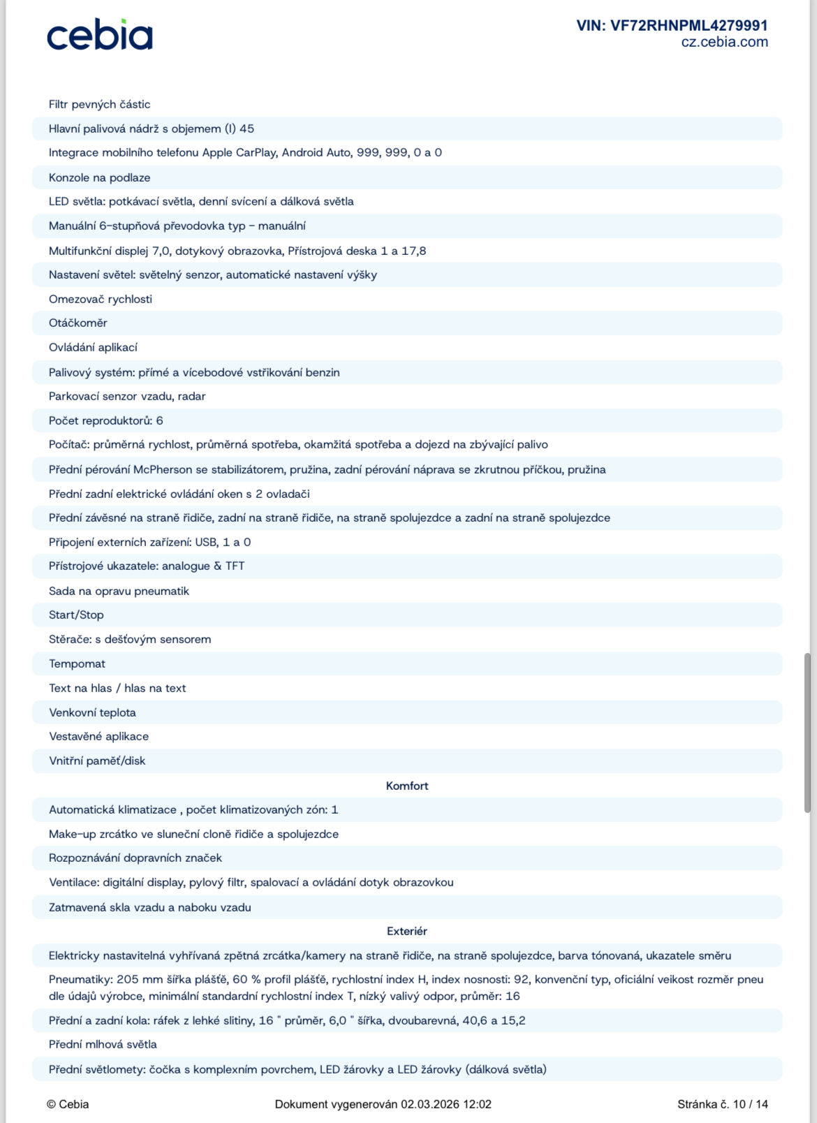 Ekonomická motorizace 1.2 PURE TECH benzin 81KW - 6 RYCHLOSTÍ. KOMBINOVANÁ SPOTŘEBA UVÁDĚNA VÝROBCEM 4.9l/100km. 5MÍST. VELMI PĚKNĚ VYBAVENO - NAPŘ. KOMPLET PARKOVACÍ SYSTÉM SE SENZORY A KAMEROU + POHLED KAMEROU Z PTAČÍ PERSPEKTIVY. TEMPOMAT. LED SVĚTLOMETY. MULTIFUNKČNÍ DISPLAY DOTYKOVÝ. MULTIFUNKČNÍ NASTAV.VOLANT ATD.