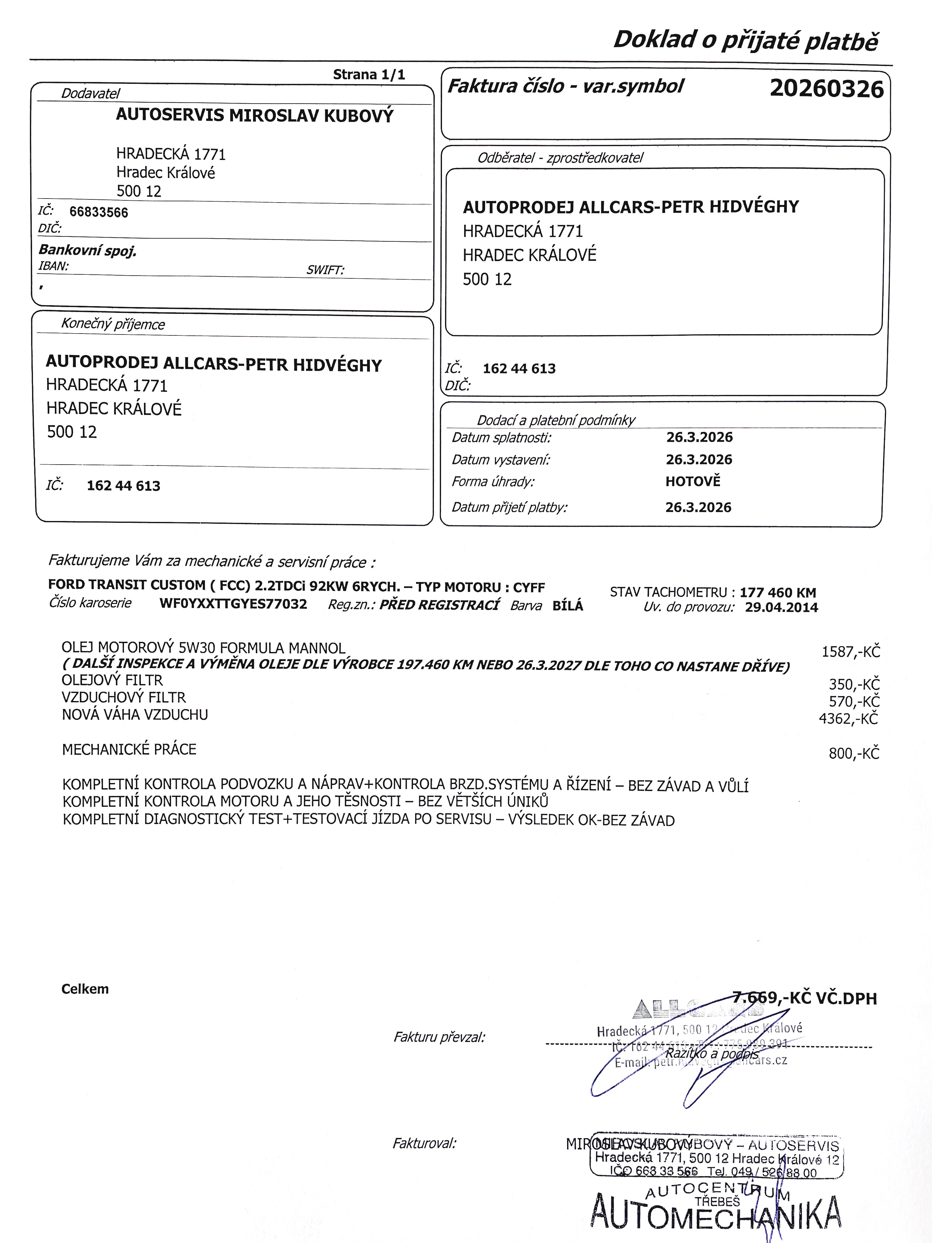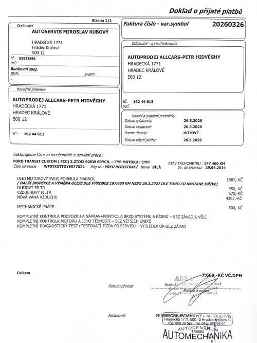 NYNÍ PO KOMPLETNÍ PŘEDPRODEJNÍ PROHLÍDCE A SERVISU VOZIDLA V NAŠEM SERVISNÍM ZÁZEMÍ V HRADCI KRÁLOVÉ 26.3.2026 NA 177.460KM - NOVÝ OLEJ V MOTORU + NOVÉ FILTRY ( OLEJ,VZDUCH) + VÝMĚNA VÁHY VZDUCHU + ADAPTACE + KOMPLETNÍ MECHANICKÁ PROHLÍDKA PODVOZKU,NÁPRAV,ŘÍZENÍ A VŮLÍ + KOMPLETNÍ DIAGNOSTIKA VOZIDLA - GARANCE PROVEDENÝCH ÚKONŮ PŘI PRODEJI + FAKTURA.