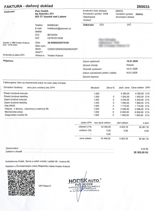 NYNÍ PO KOMPLETNÍ PŘEDPRODEJNÍ KONTROLE A SERVISU VOZIDLA 16.1.2026 V HRADCI KRÁLOVÉ ZA 28.382,- KČ - DŮKLADNÁ MECHANICKÁ KONTROLA NÁPRAV, ŘÍZENÍ, VŮLÍ + KONTROLA MOTORU A TĚSNOSTI+KOMPLETNÍ DIAGNOSTIKA VOZIDLA+NOVÝ OLEJ V MOTORU 5W30 CASTROL EDGE+NOVÉ FILTRY(OLEJ,VZDUCH,KABINA, PALIVO)+KOMPLETNÍ VÝMĚNA PŘEDNÍCH I ZADNÍCH BRZDOVÝCH KOTOUČŮ A DESTIČEK - VŠE GARANTOVÁNO PŘI PRODEJI DO KUPNÍ SMLOUVY + FAKTURA!