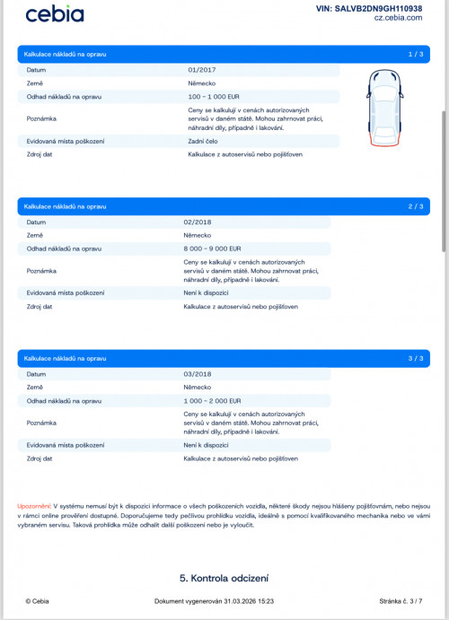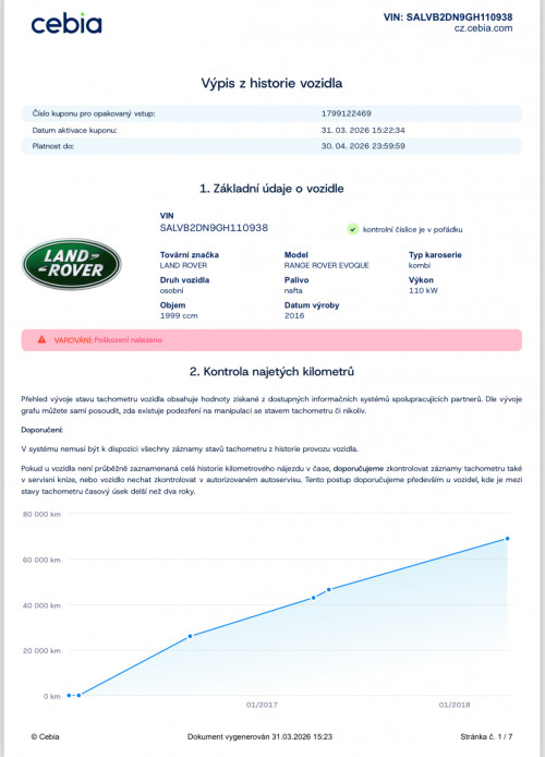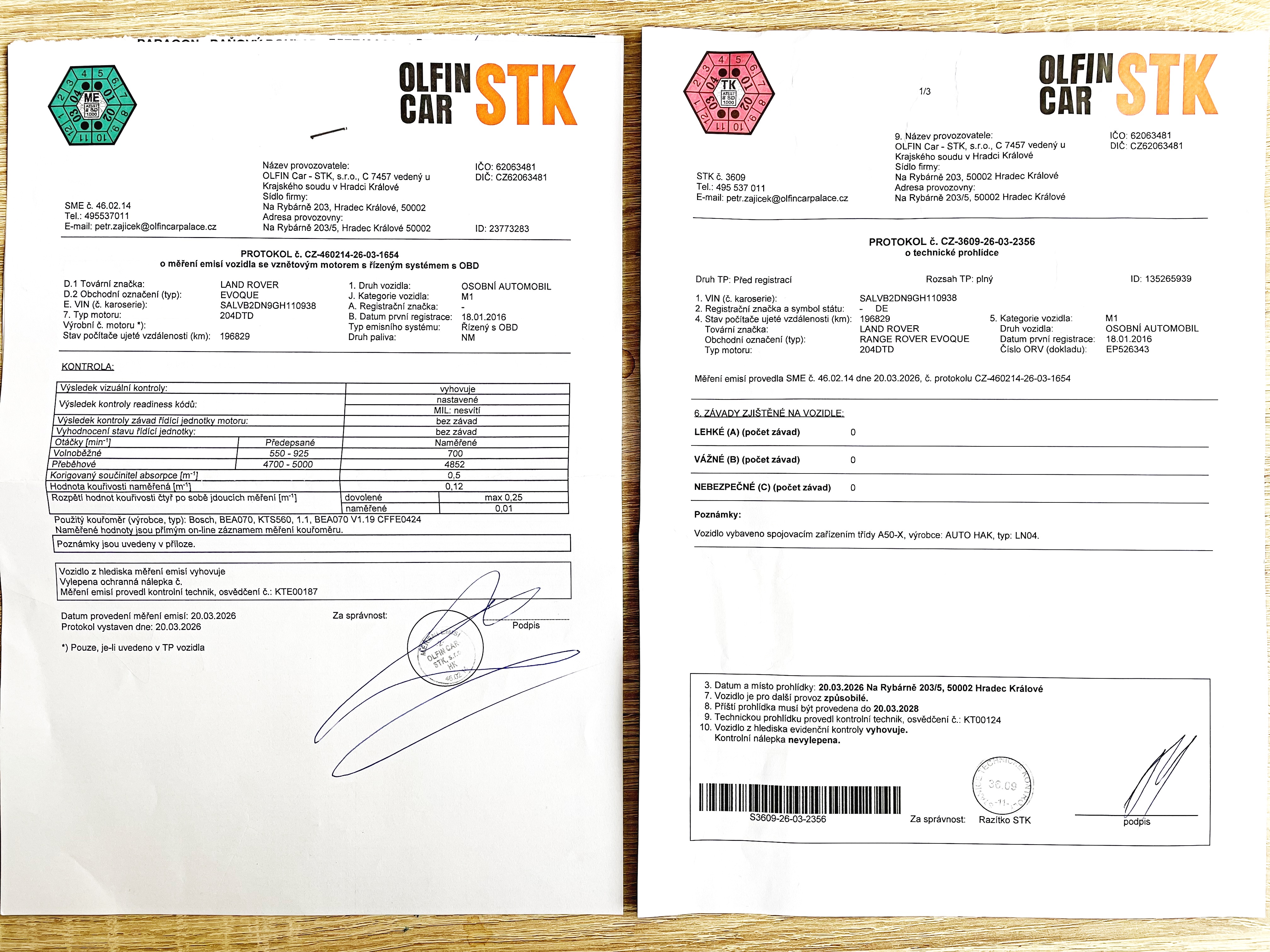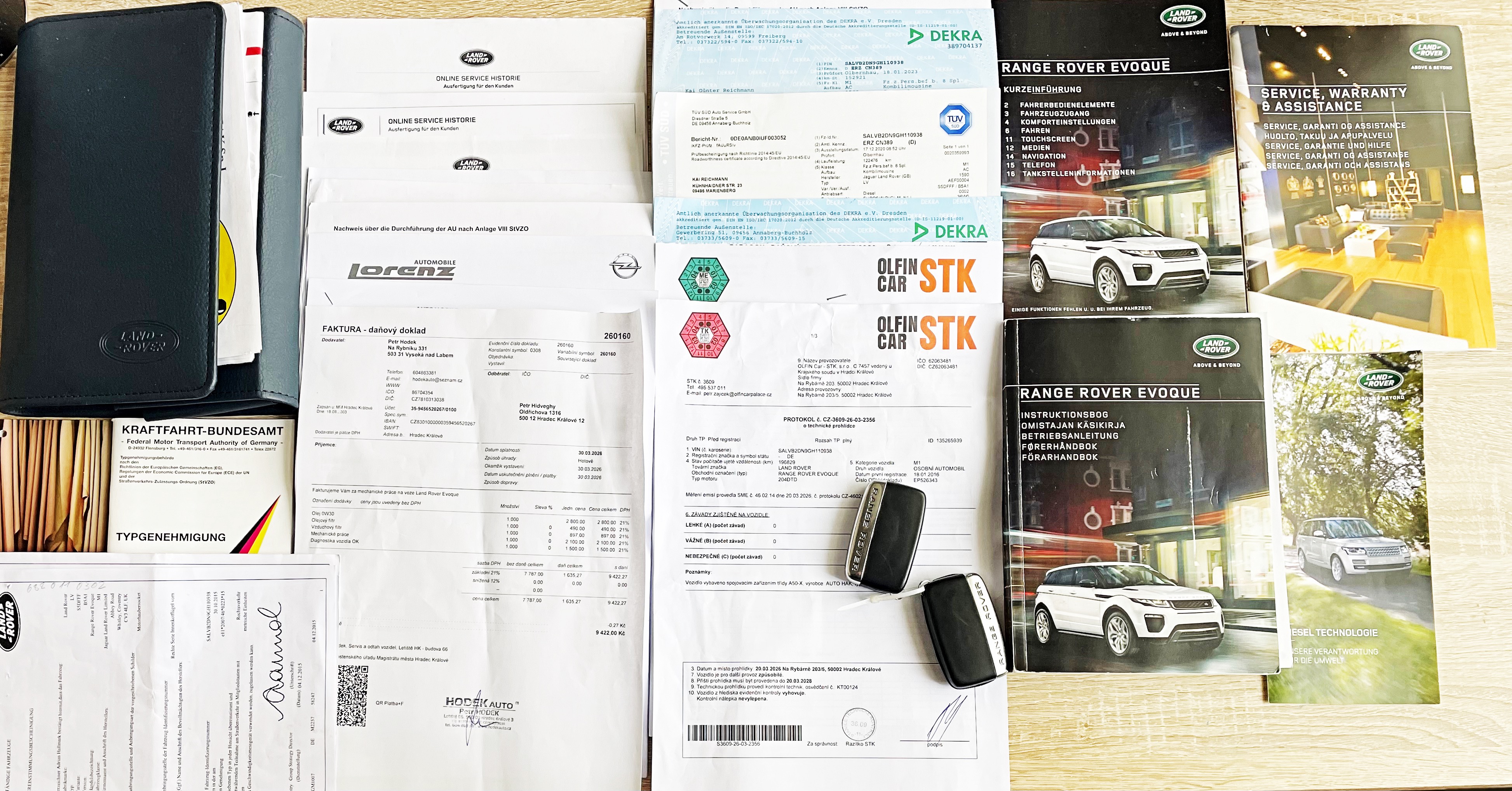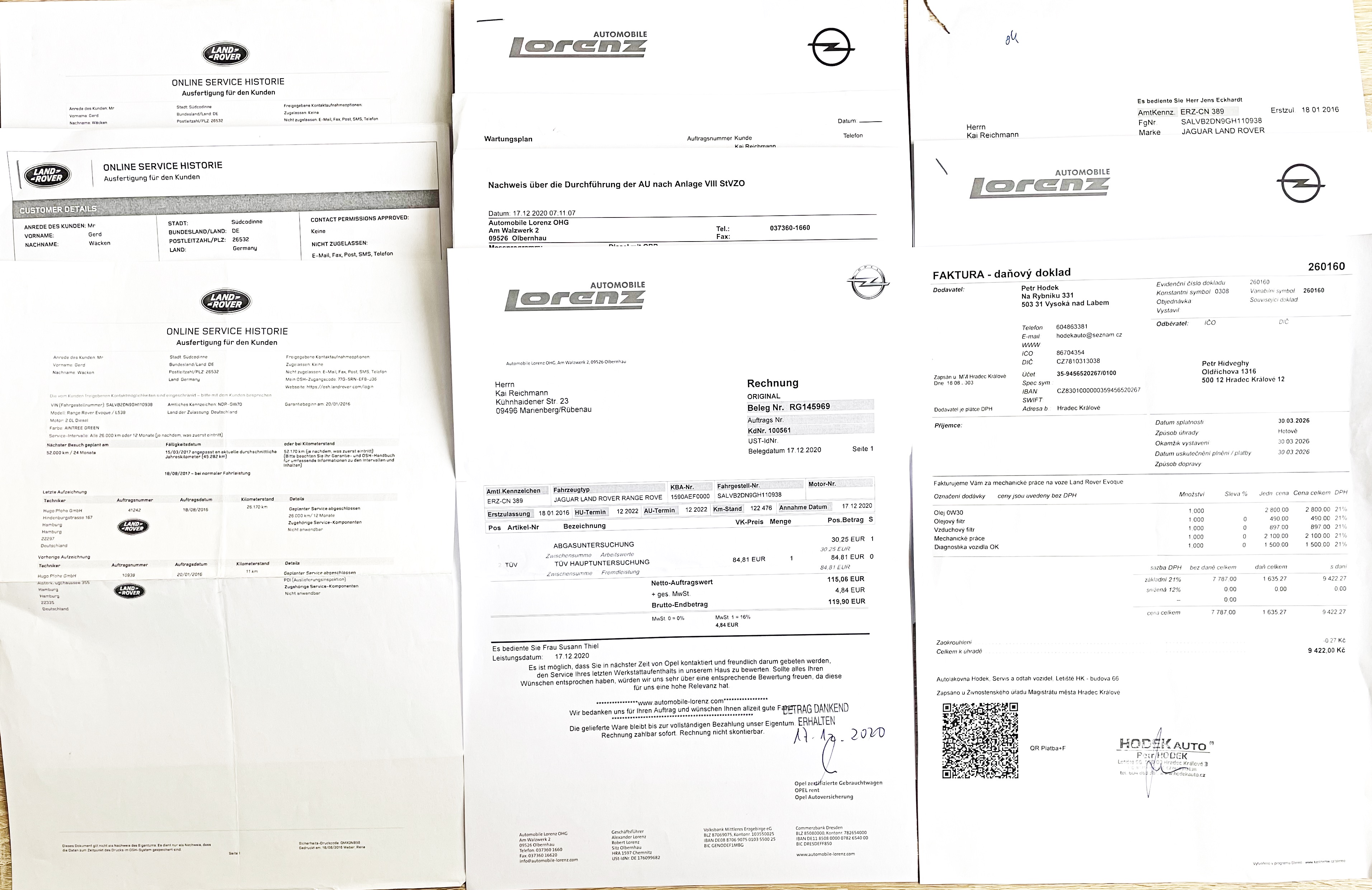 COC LIST PRŮKAZ PŮVODU VOZU+VÝPIS Z HISTORIE RANGEROVER+FAKTURY ZA ÚDRŽBU V NĚMECKU + PROTOKOLY TÜV Z POSLEDNÍCH STK Z NĚMECKA OD 2020 DO 2026 + PROTOKOLY Z STK V ČR + VEŠKERÁ PALUBNÍ DOKUMENTACE K OBSLUZE A ÚDRŽBĚ RANGER ROVER + KOMPLETNÍ REPORT CEBIA + TAŽNÉ ZAŘÍZENÍ + 2X SADA LITÝCH KOL ( LETNÍ A ZIMNÍ ) + 2X KLÍČ