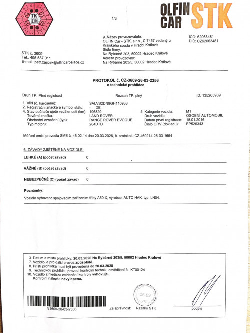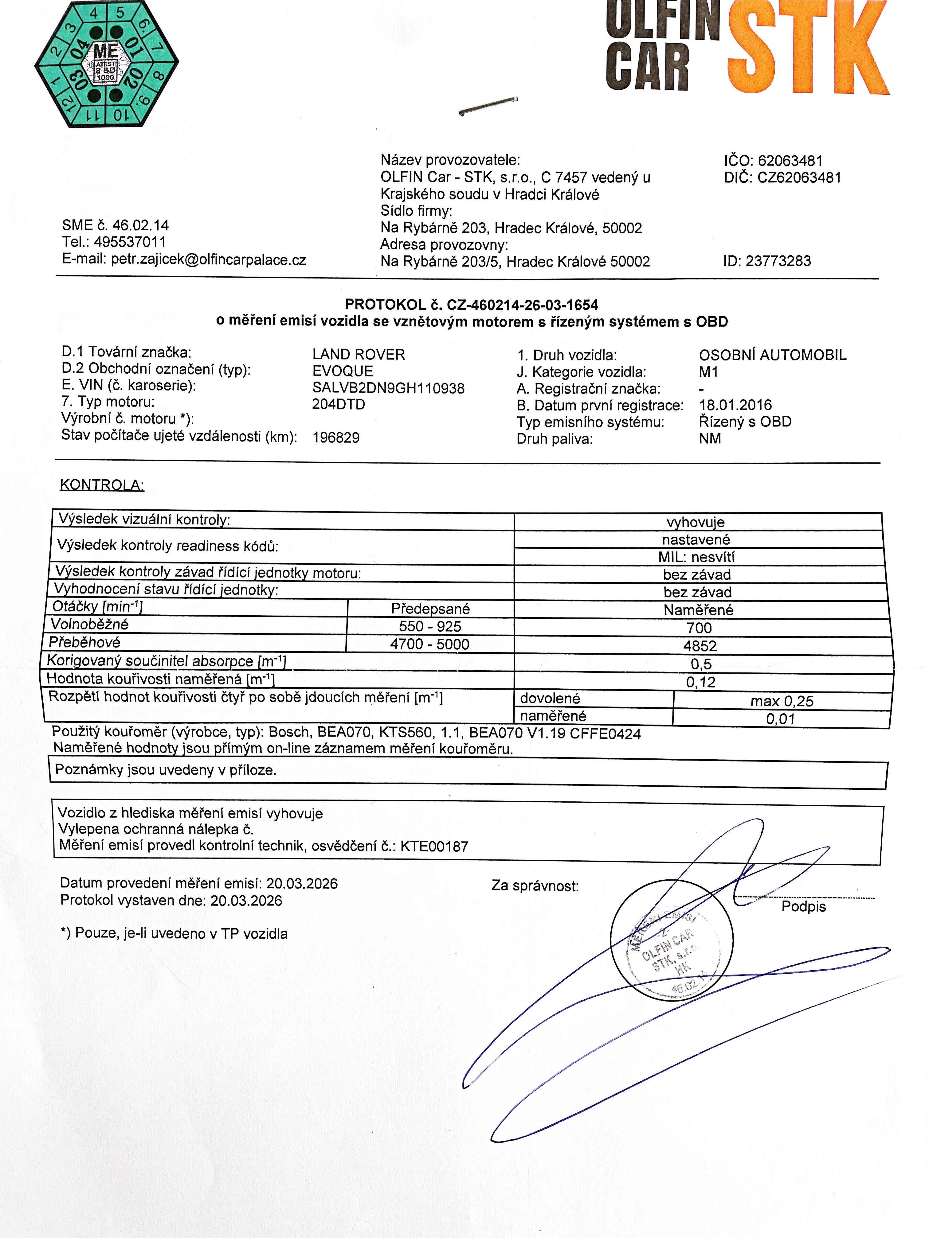 NOVÁ TECHNICKÁ KONTROLA A EMISE DO 3/2028 U STK OLFIN CAR - PROŠLO BEZ JEDINNÉ ZÁVADY.