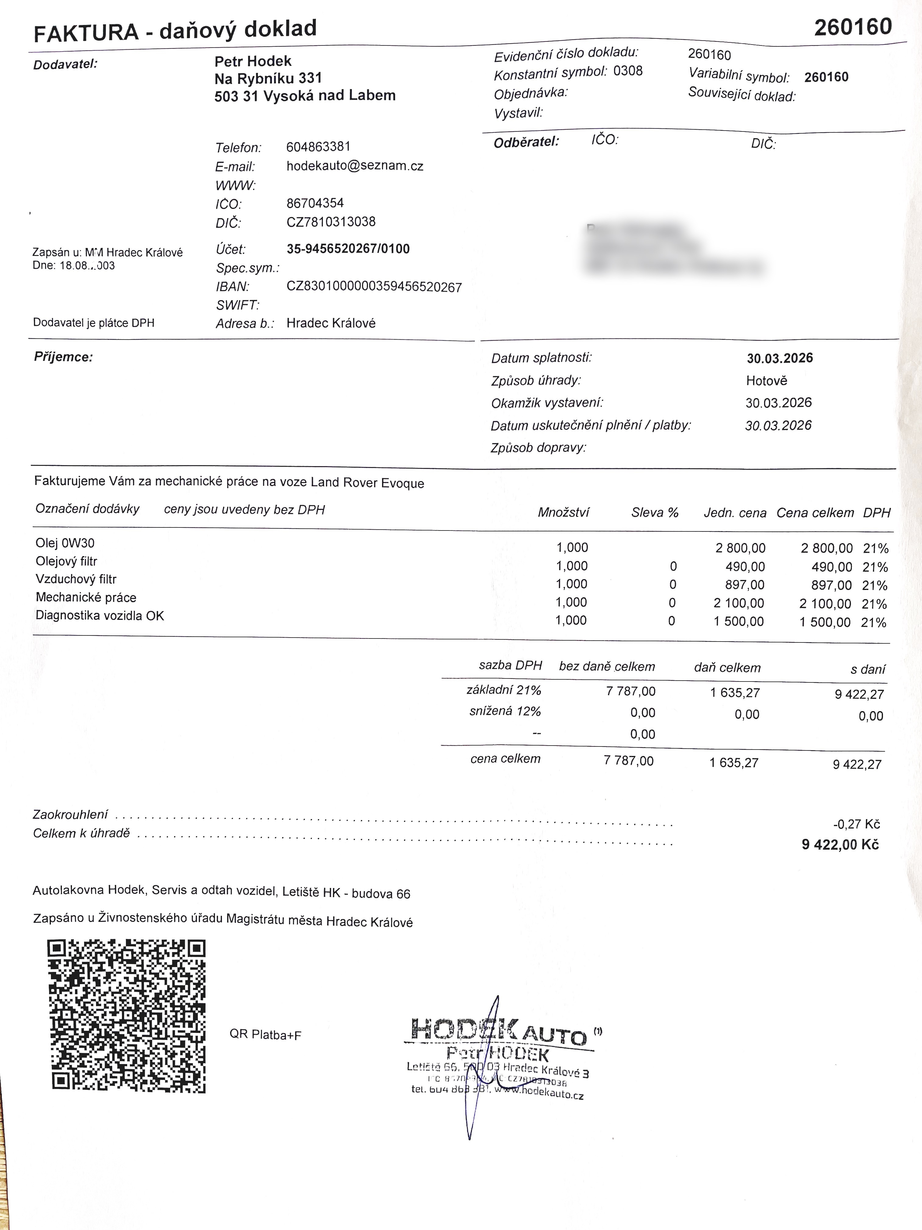 NYNÍ PO KOMPLETNÍM PŘEDPRODEJNÍM SERVISU A KOMPLETNÍ KONTROLE VOZIDLA U HODEK AUTO V HRADCI KRÁLOVÉ 30.3.2026 - NOVÝ OLEJ V MOTORU+FILTRY ( OLEJ, VZDUCH) + KOMPLETNÍ MECHANICKÁ KONTROLA VOZIDLA + KONTROLA MOTORU A TĚSNOSTI + KOMPLETNÍ DIAGNOSTIKA VOZIDLA - FAKTURA + GARANCE PROVEDENÉHO SERVISU PŘI PRODEJI DO SMLOUVY.