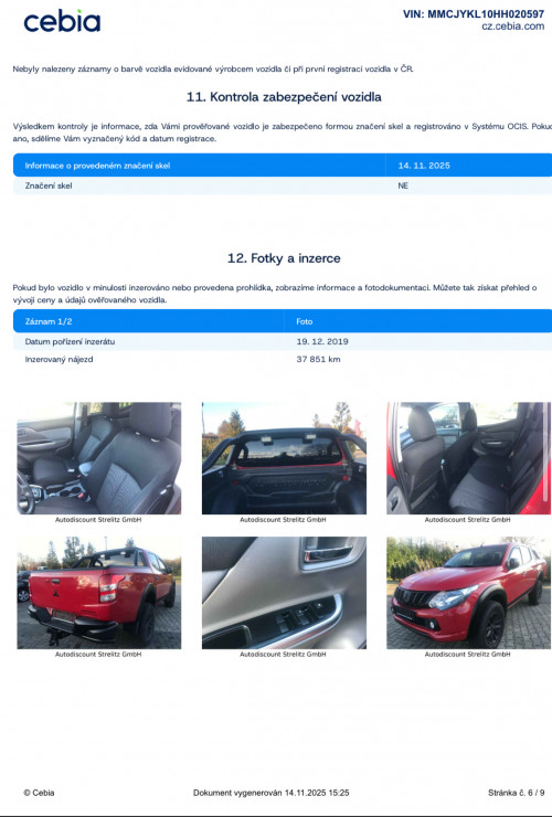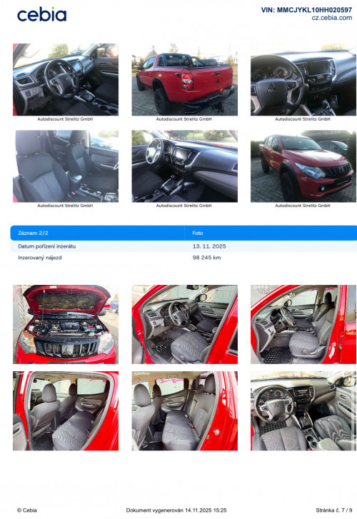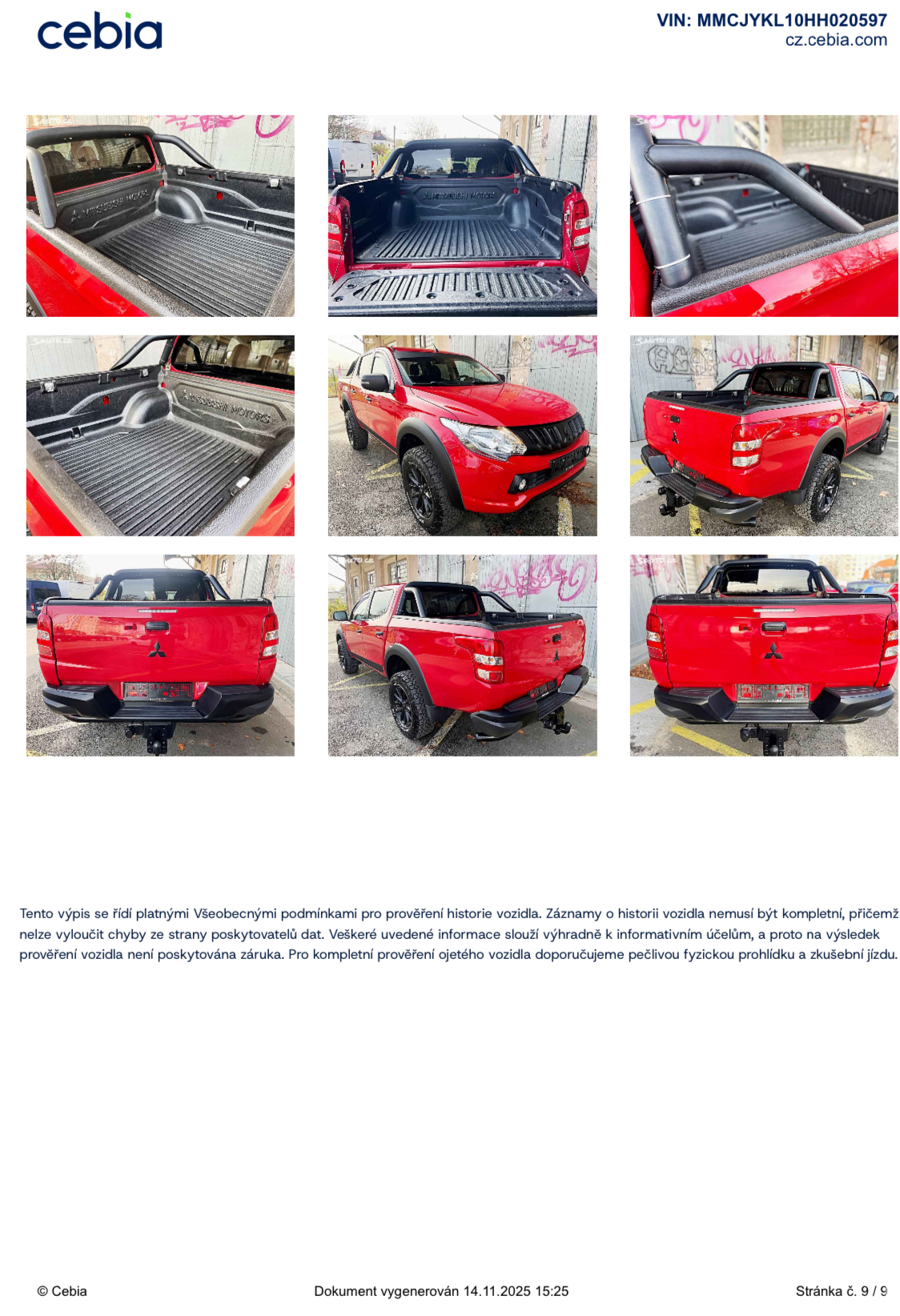 Vozidlo zakoupeno jako MITSUBISHI Autohaus Lönnecker GMBH Waren ( MÜRRITZ ) v Německu. V NĚMECKU ZVÝŠENÝ PODVOZEK, Příplatkové rámy, zadní hrazda, plastový kryt korby, OFFROAD pneu, příplatkové lemy blatníků od výroby. TAŽNÉ ZAŘÍZENÍ NA 3,5 TUNY.