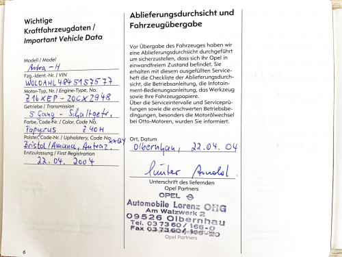 Vozidlo zakoupeno jako nové i ojeté u autorizovaného dealera OPEL Automobile LORENZ OHG v Olbernhau v Německu. Pěkný udržovaný stav s jednoduchou motorizací.