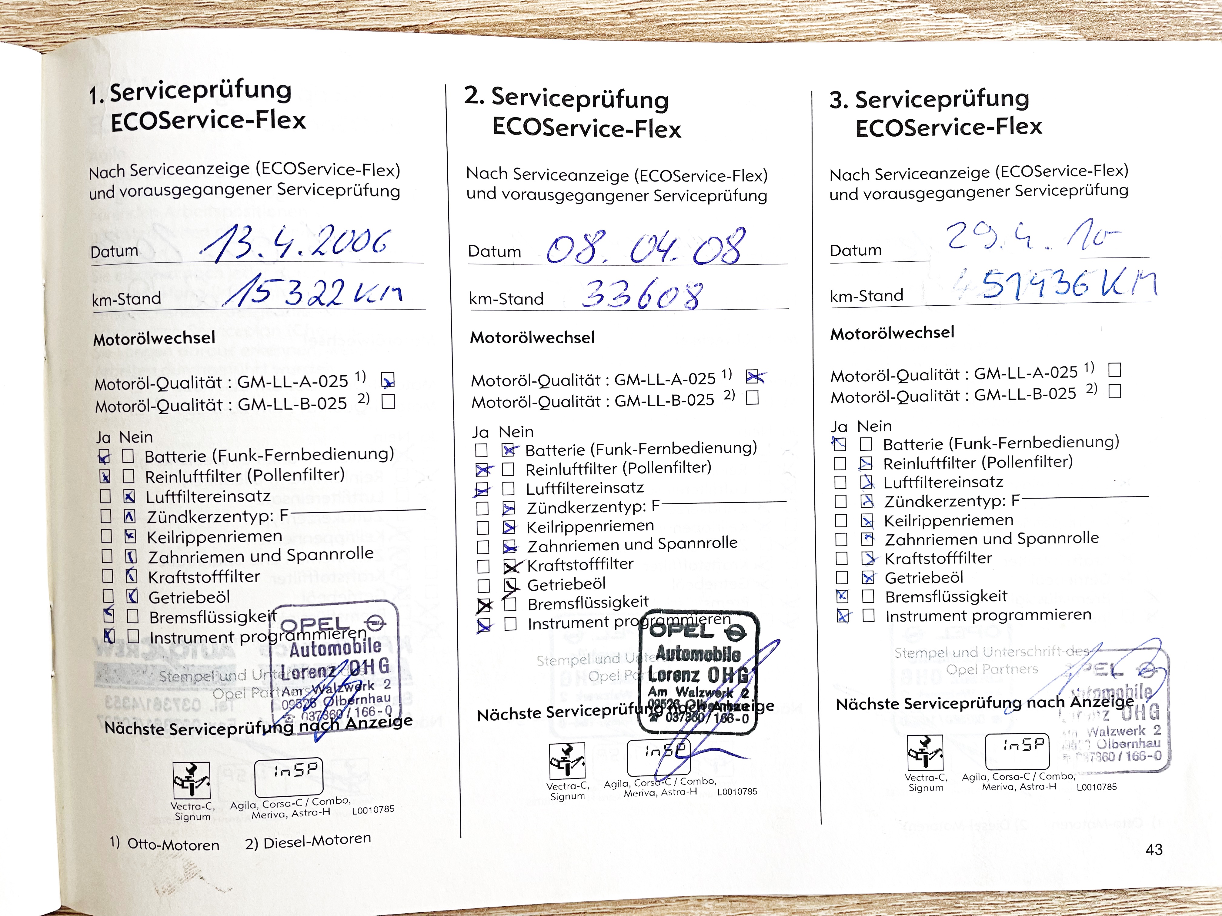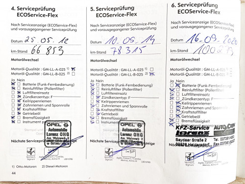 DLE ZÁZNAMU V SERVISNÍ KNIZE NA 78.315 KM PROBĚHLA KOMPLETNÍ VÝMĚNA ROZVODŮ DLE PLÁNU VÝROBCE A TO U AUTORIZOVANÉHO DEALERA OPEL AUTOMOBILE LORENZ OHG V OLBERNHAU V NĚMECKU, KDE BYLO ZAKOUPENO.