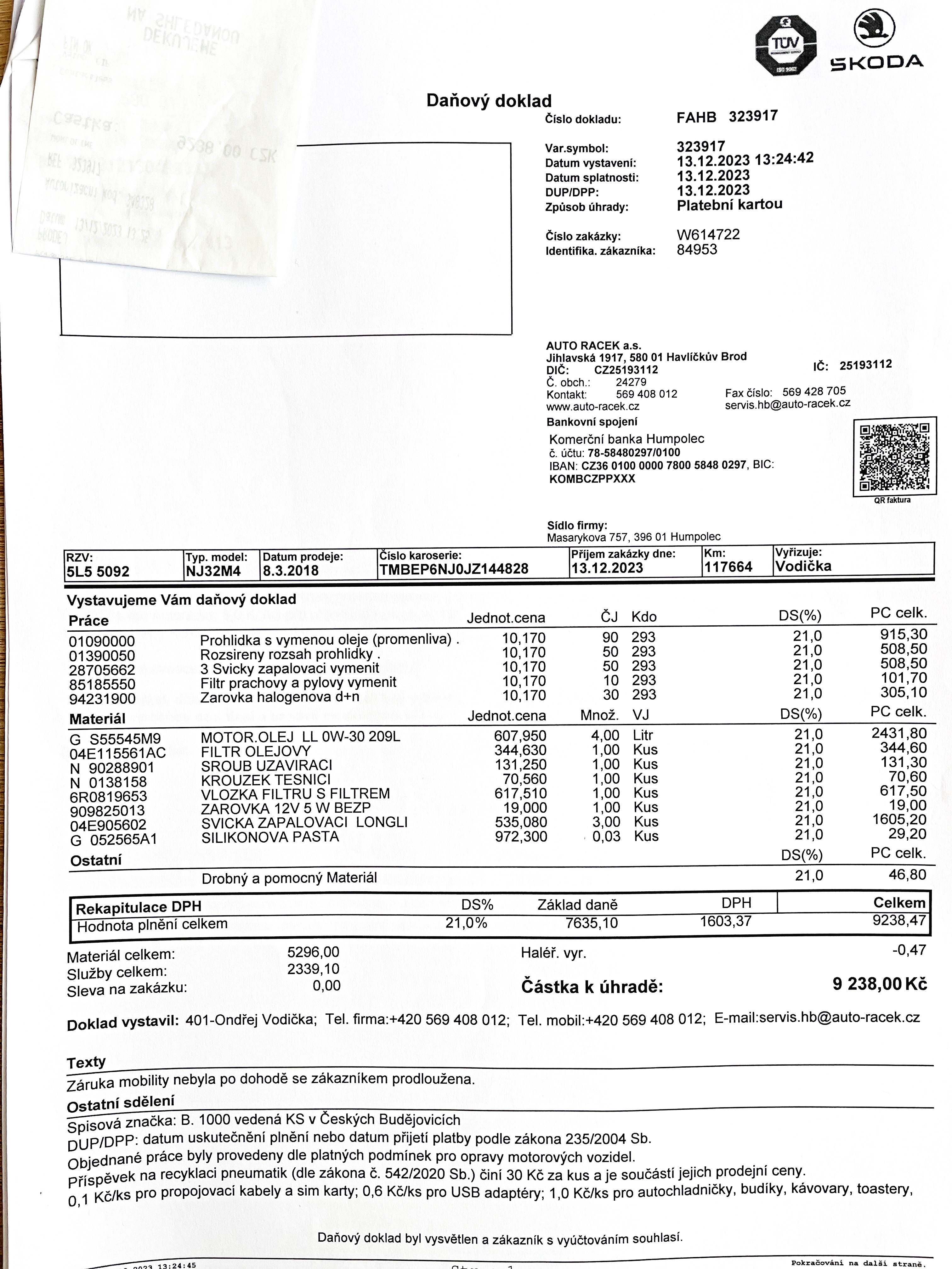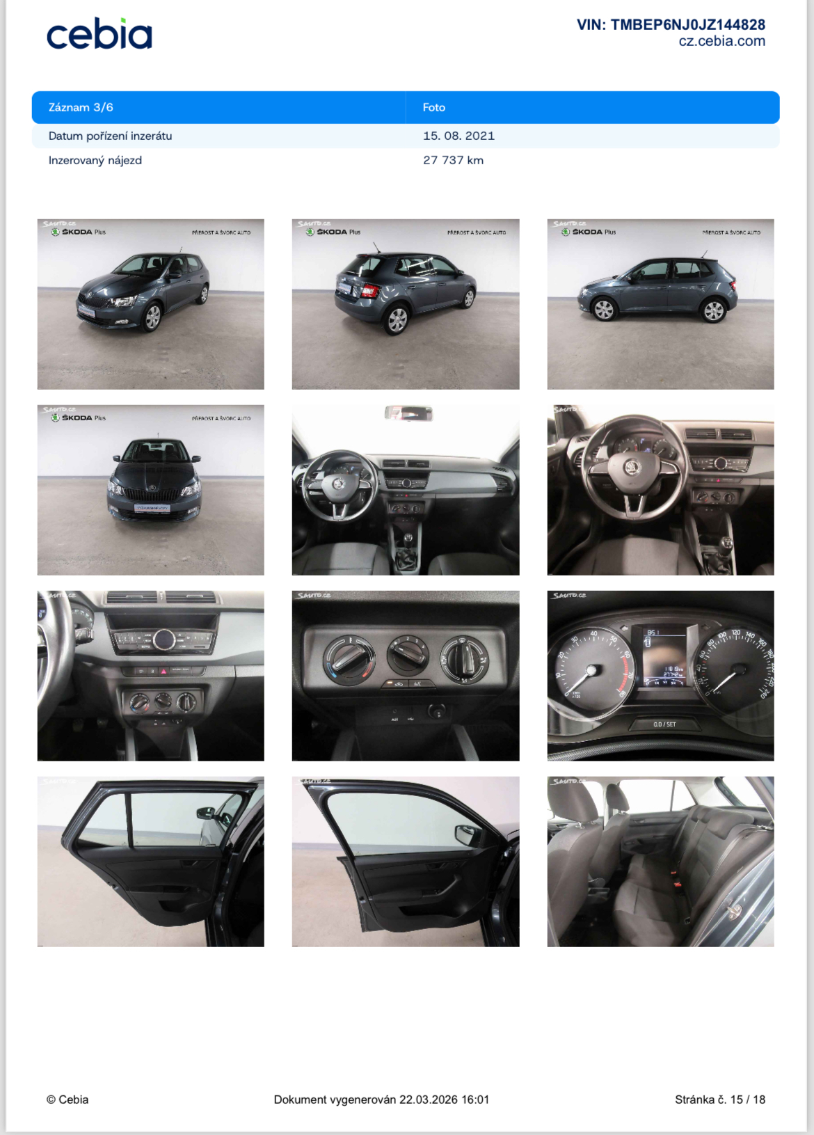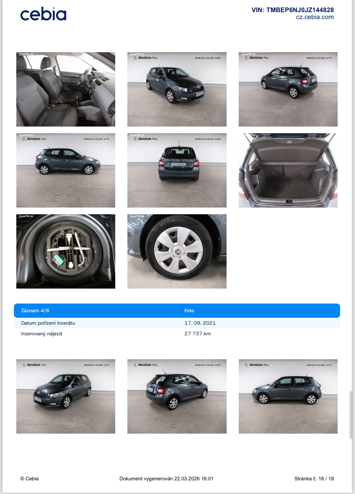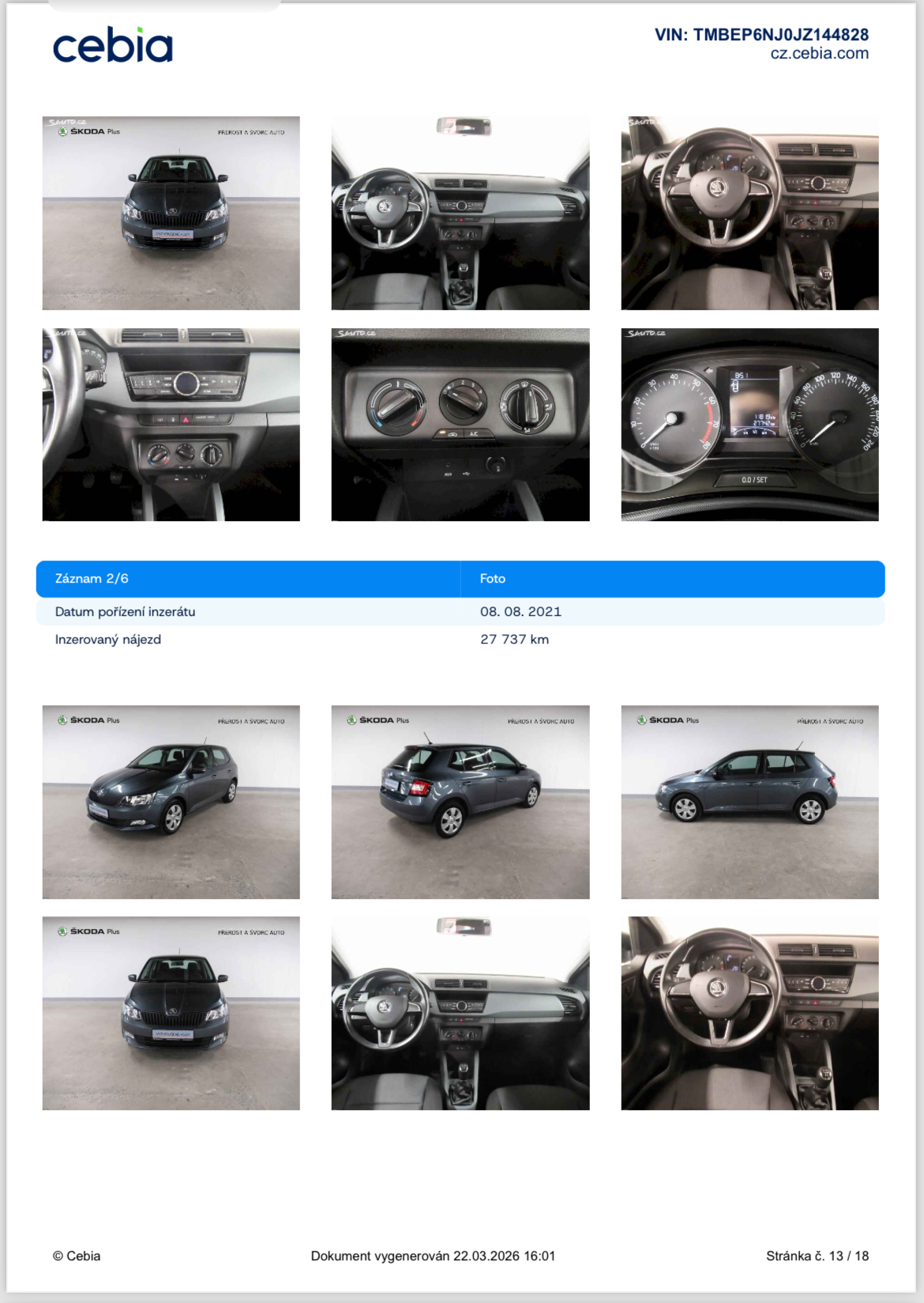 Vozidlo zakoupeno jako nové u autorizovaného dealera Škoda Autosalon Astra a.s. v Jablonci nad Nisou, jako ojeté u autorizovaného dealera Škoda Přerost&Švorc Auto s.r.o. Po celou dobu pravidelná údržba dle předepsaných intervalů údržby výrobce Škoda a to do roku 2024 pouze v autorizovaných servisech Škoda, jasně doloženo vytištěnou digitální historií a fakturami.