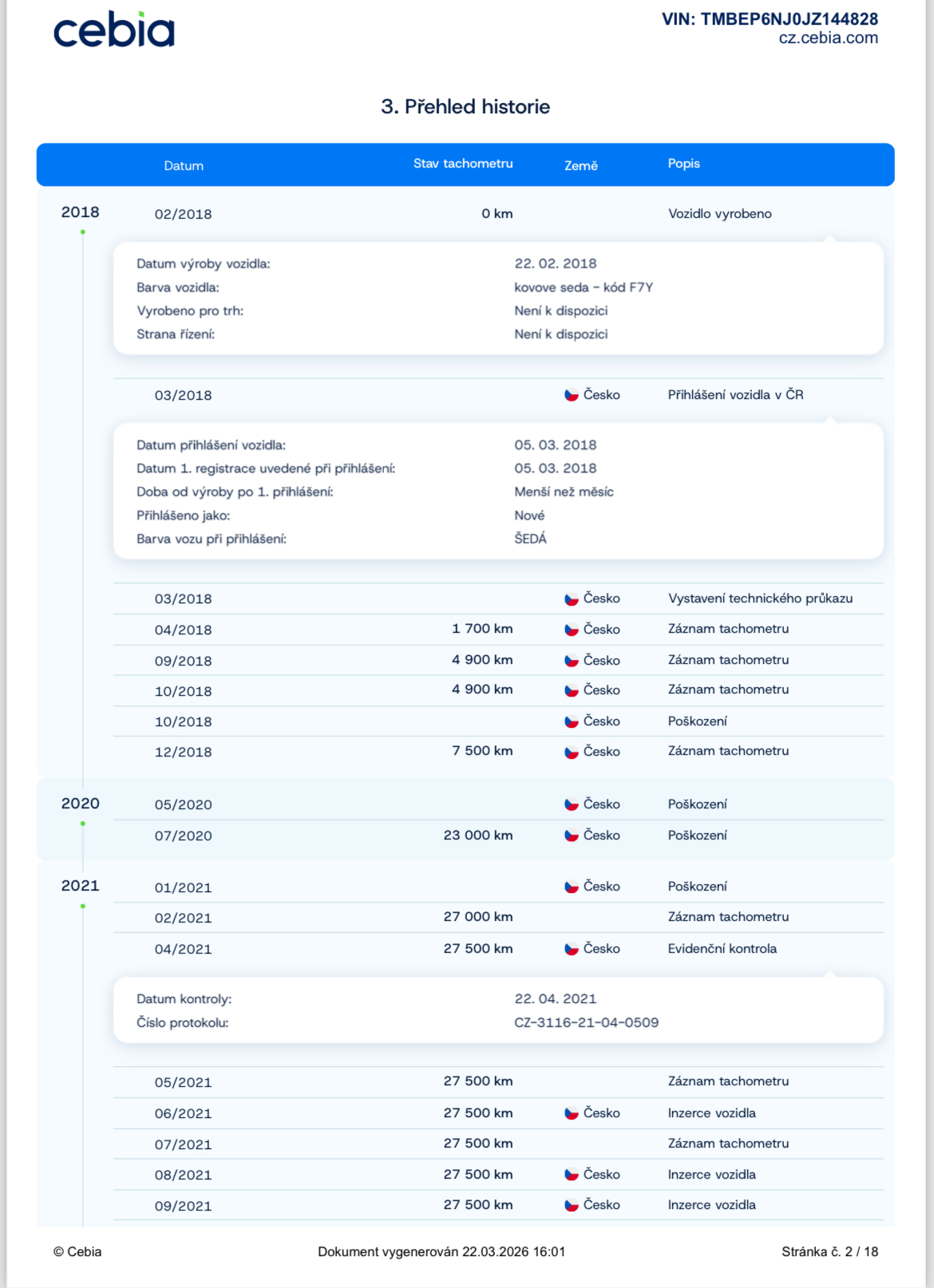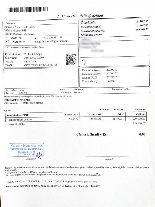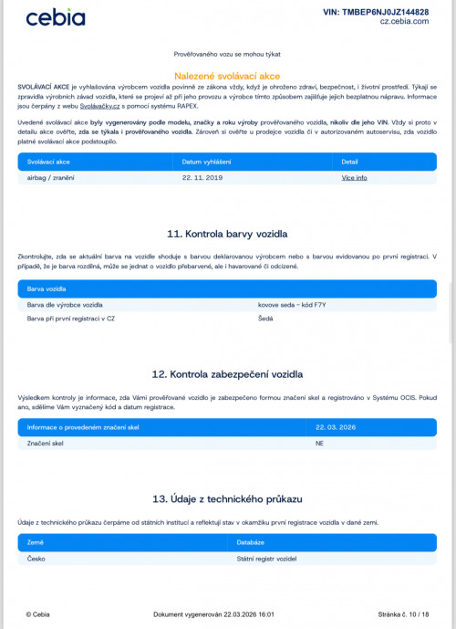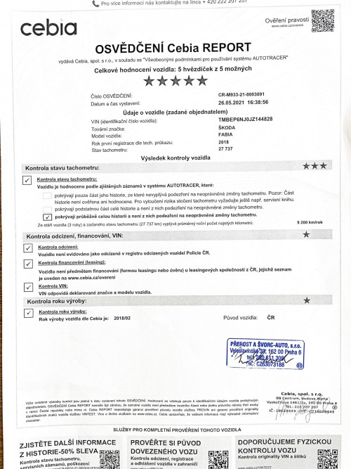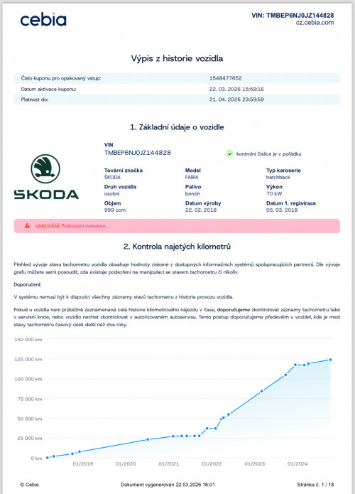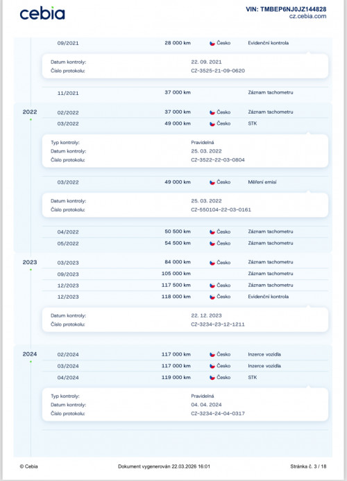 Uvedení do provozu 5.3.2018. DO ROKU 9/2021 MAJETKEM ŠKODA AUTO, OD 9/2021 s nájezdem 28.000KM zakoupeno 1.majitelem ( fyzickou osobou) OD ROKU 2024 DO 3/2026 2.MAJITELKA ( FYZICKÁ OSOBA ) PÍSEMNÁ PRÁVNÍ GARANCE PŮVODU A NAJETÝCH KM DO KUPNÍ SMLOUVY PŘI PRODEJI - NAJETO SKUTEČNÝCH A JASNĚ DOLOŽENÝCH 136.400KM - VŠE LEHCE DOHLEDATELNÉ!