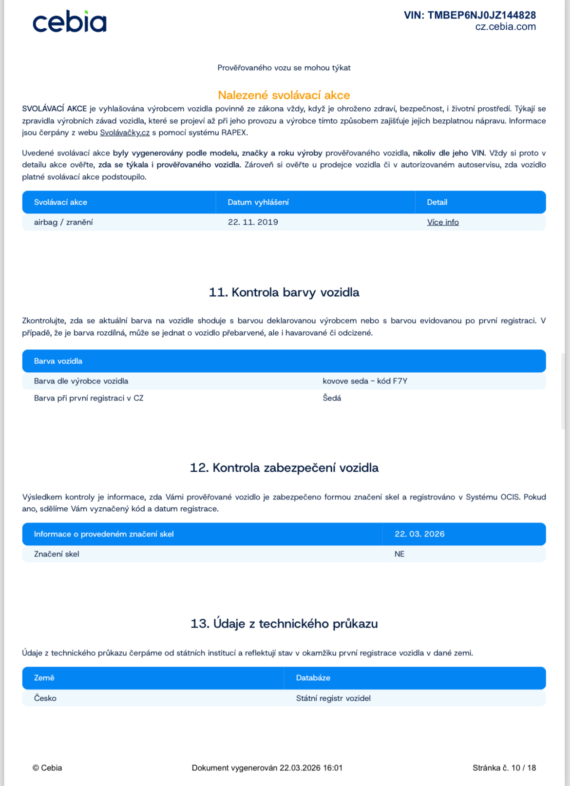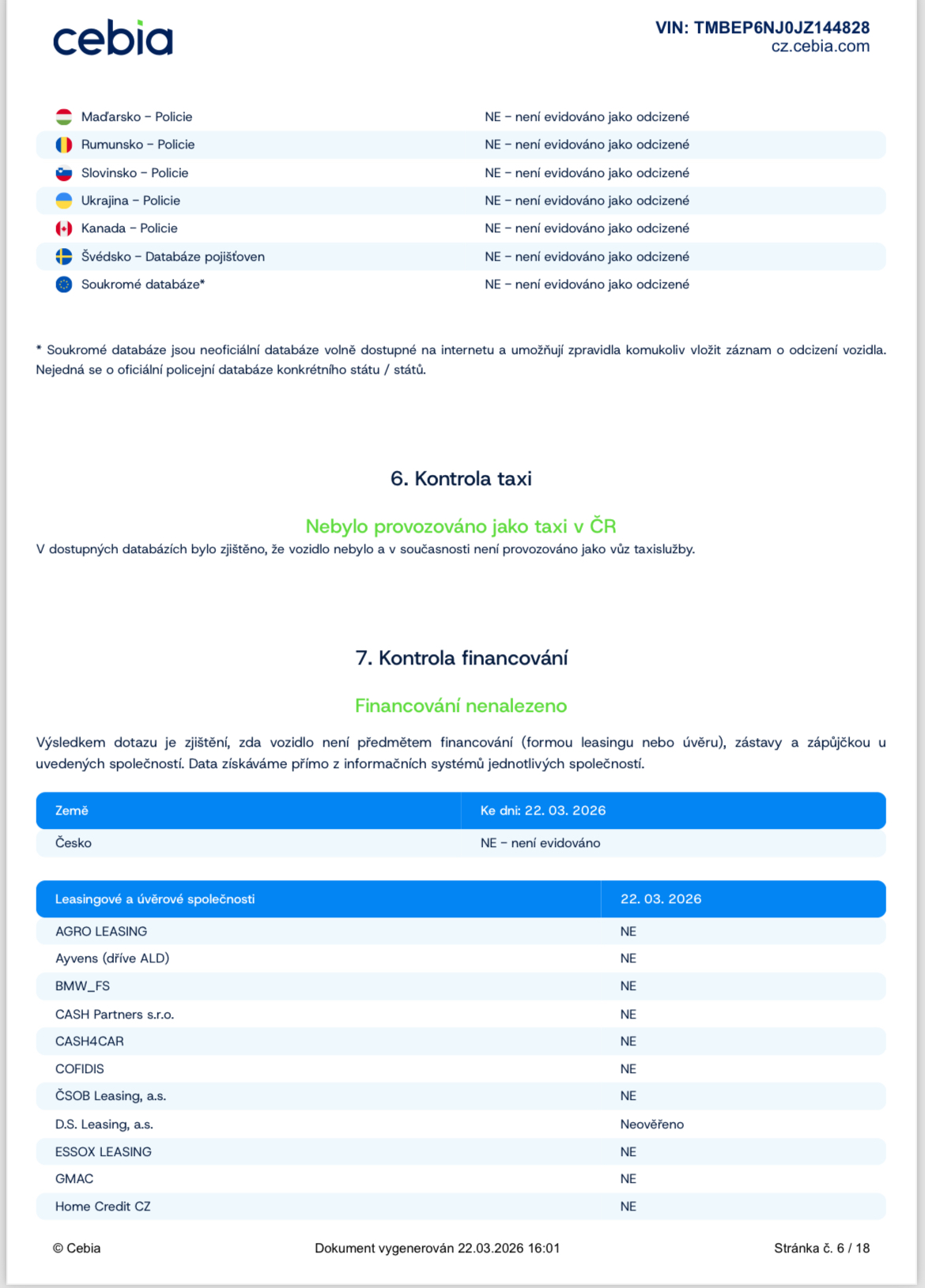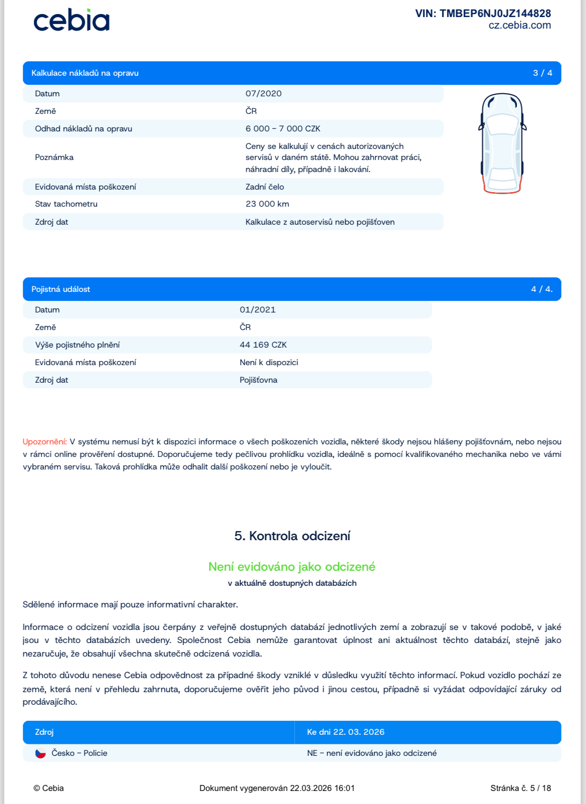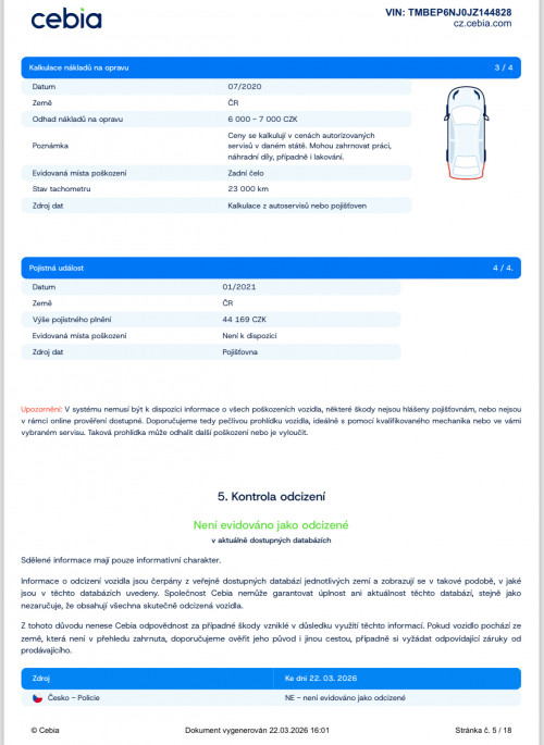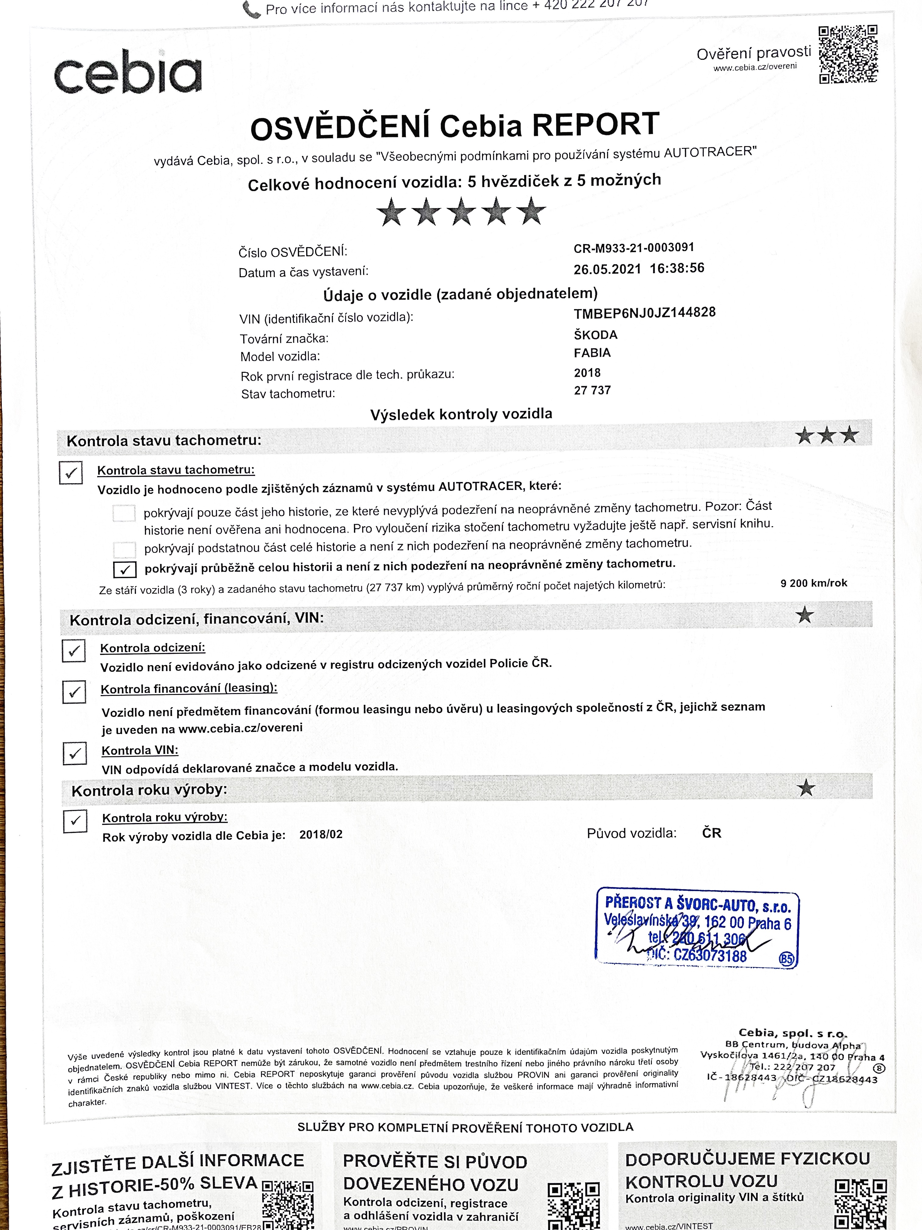 Ostatní: ZÁRUKA PŮVODU A NAJETÝCH KM