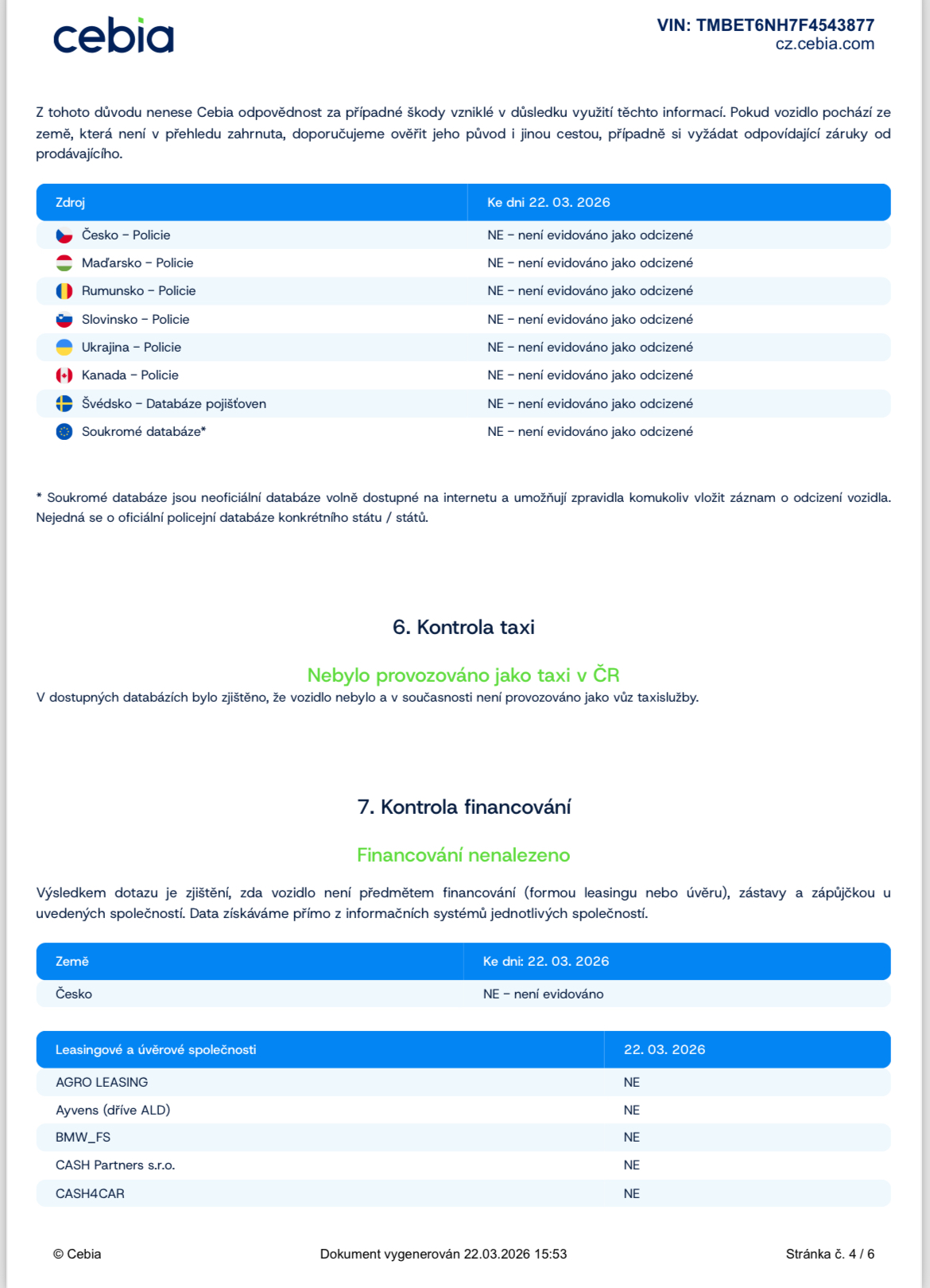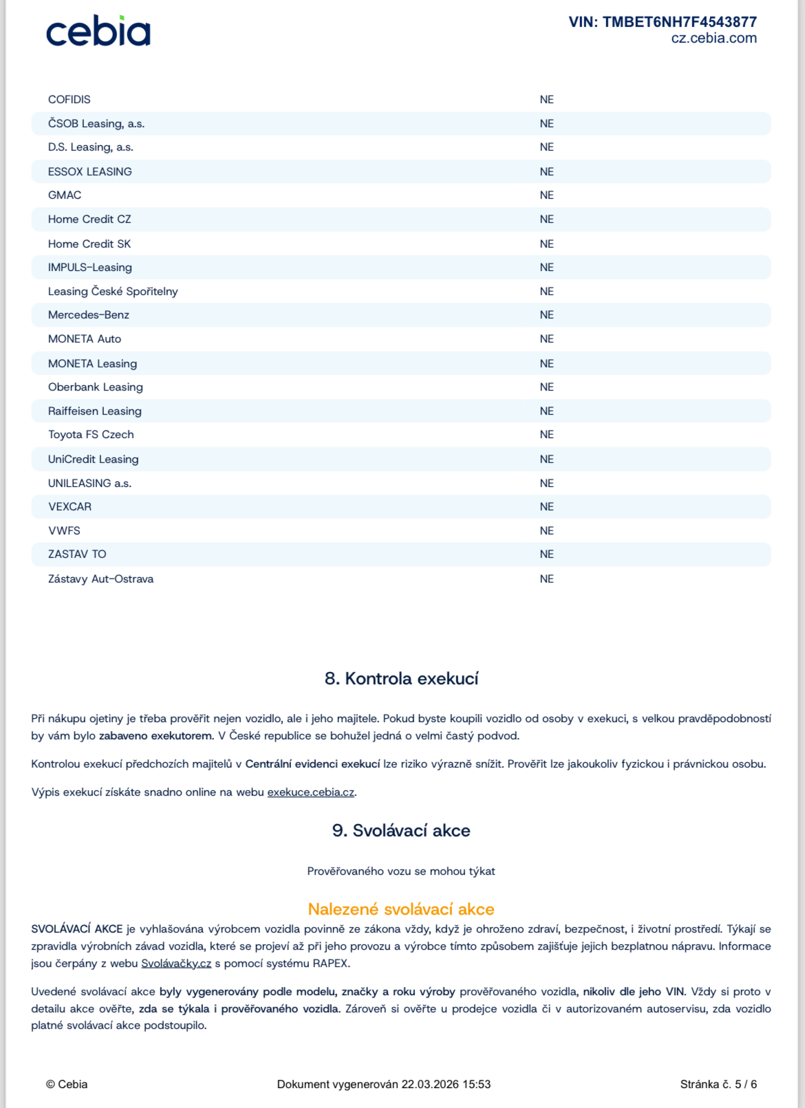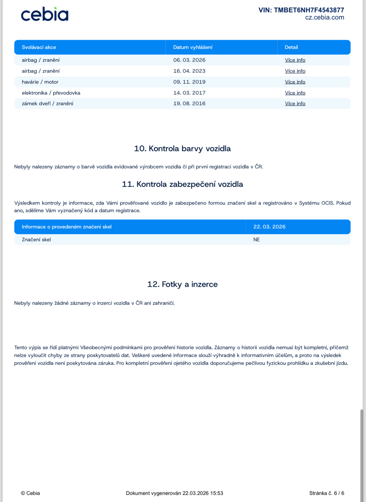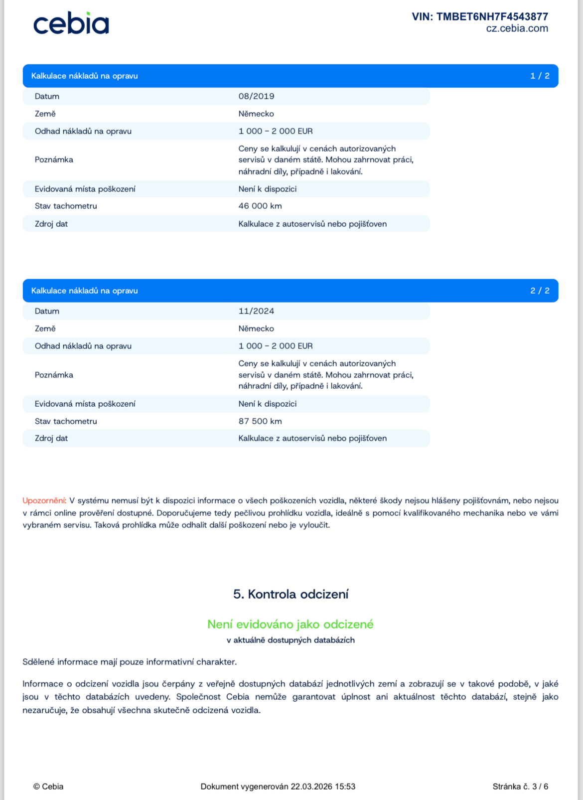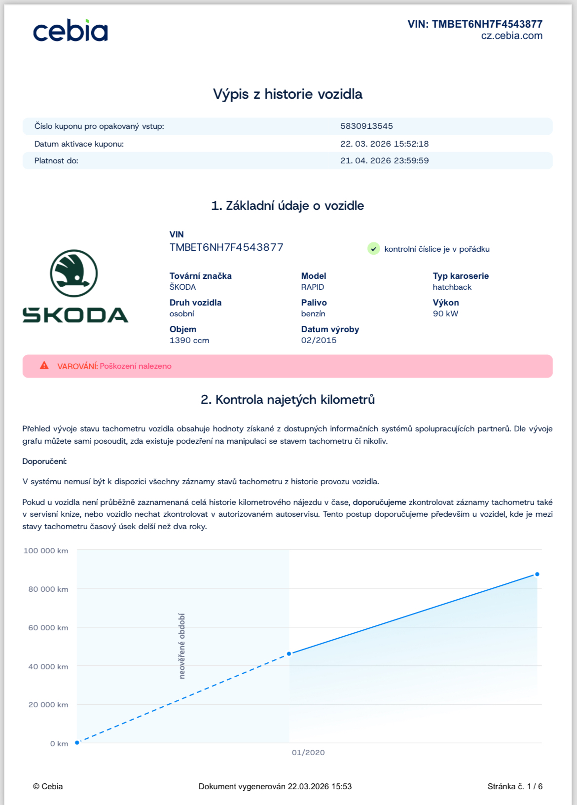 Ostatní: ZÁRUKA PŮVODU A NAJETÝCH KM
